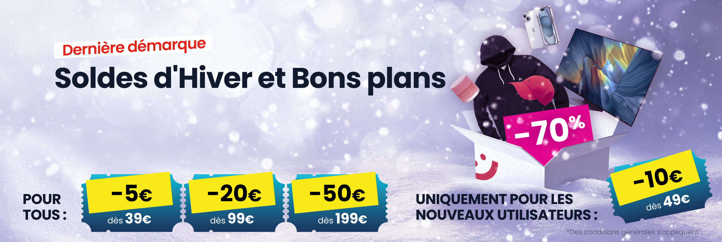 Cette opération promotionnelle propose quatre types de coupons valables sur une sélection de produits éligibles : 50 € de réduction dès 199 € d’achat minimum, 20 € de réduction dès 99 € d’achat minimum, 5 € de réduction dès 39 € d’achat minimum et pour les nouveaux utilisateurs 10 € de réduction dès 49 € d’achat minimum. Les coupons peuvent être réclamés jusqu’au 3 février 2026 à 23h59 (heure de Paris) et doivent être utilisés dans un délai de 24 heures après leur réclamation. Passé ce délai, ils expireront automatiquement. L’offre est limitée en quantité : une fois le stock de coupons épuisé, aucune attribution supplémentaire ne sera effectuée. Chaque utilisateur peut bénéficier d’un seul coupon par type d’offre, soit un coupon de 10 € et un coupon de 15 € maximum. Les coupons sont personnels, non cessibles, non remboursables et non cumulables avec d’autres promotions ou réductions en cours. Les coupons ne sont valables que sur la sélection de produits indiquée sur la page de campagne. Tout autre produit est exclu. Conformément aux articles L.121-1 à L.121-7 du Code de la Consommation, l’opération doit être présentée de manière claire, loyale et non trompeuse. Les conditions d’application, le montant minimal d’achat et la durée de validité doivent être clairement mentionnés. Les coupons n’ont aucune valeur monétaire et ne peuvent être ni échangés ni remboursés. L’organisateur se réserve le droit de modifier ou d’annuler l’offre en cas de force majeure, d’exigence légale, ou de problème technique, sans préavis.