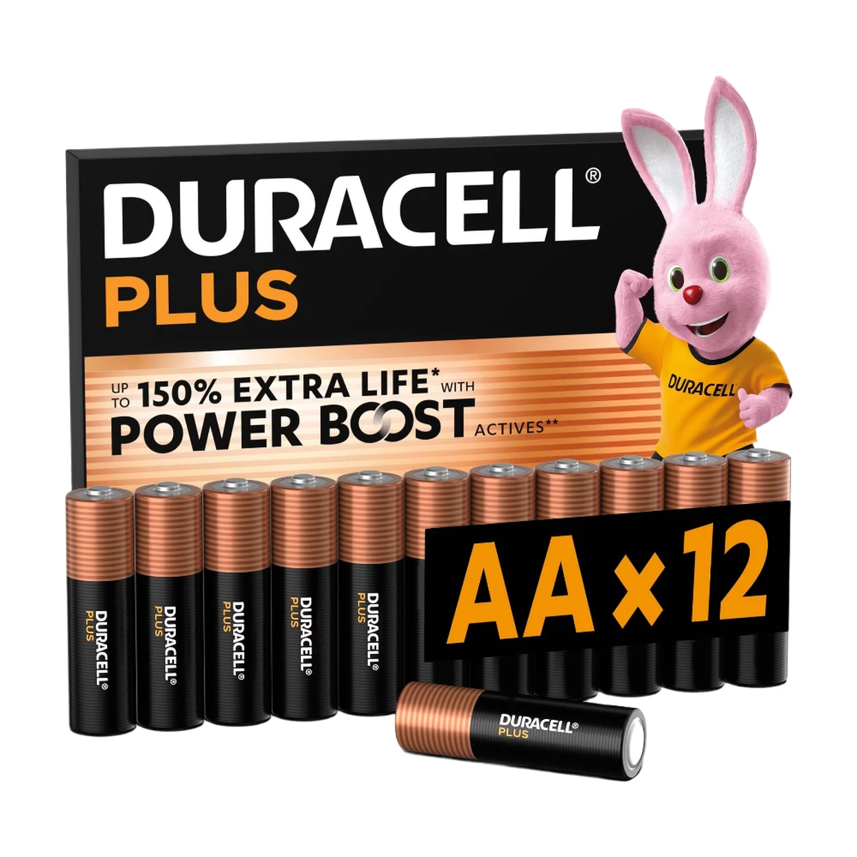 Piles DURACELL Plus AA (Pack de 12) – Piles alcalines 1,5 V – Durées jusqu'à 150 % plus longues* grâce aux ingrédients POWER BOOST** – Fiable pour vos appareils du quotidien – 0 % d'emballage plastique – Durée de conservation garantie de 10 ans – LR6 MN1500