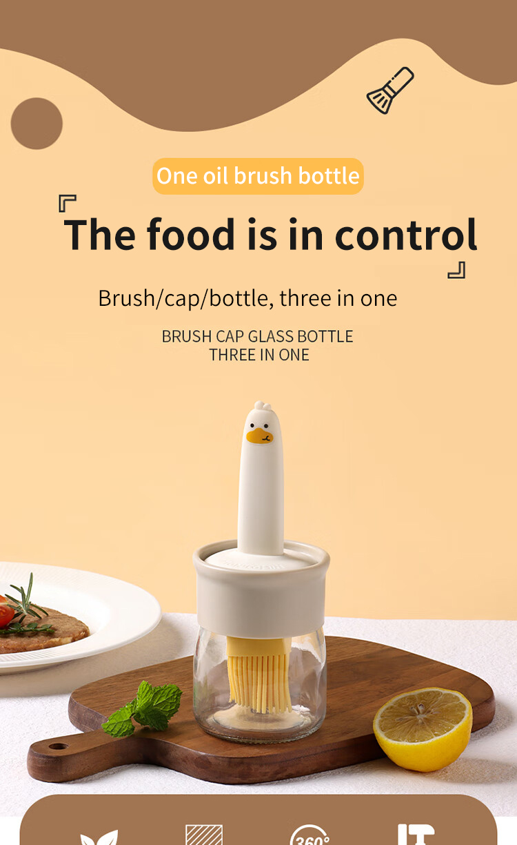 BJ pinceau à huile avec bouteille, pinceau à huile en verre pour cuisson et barbecue