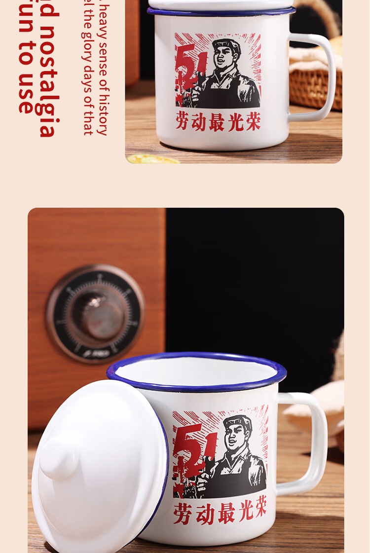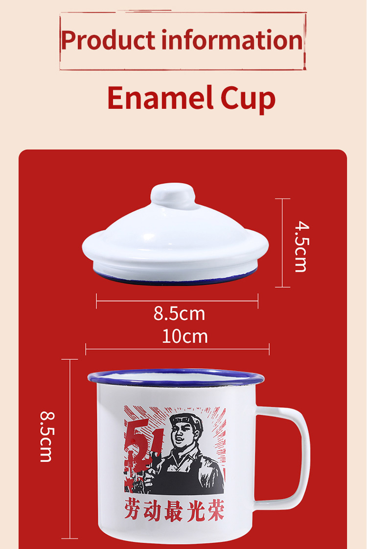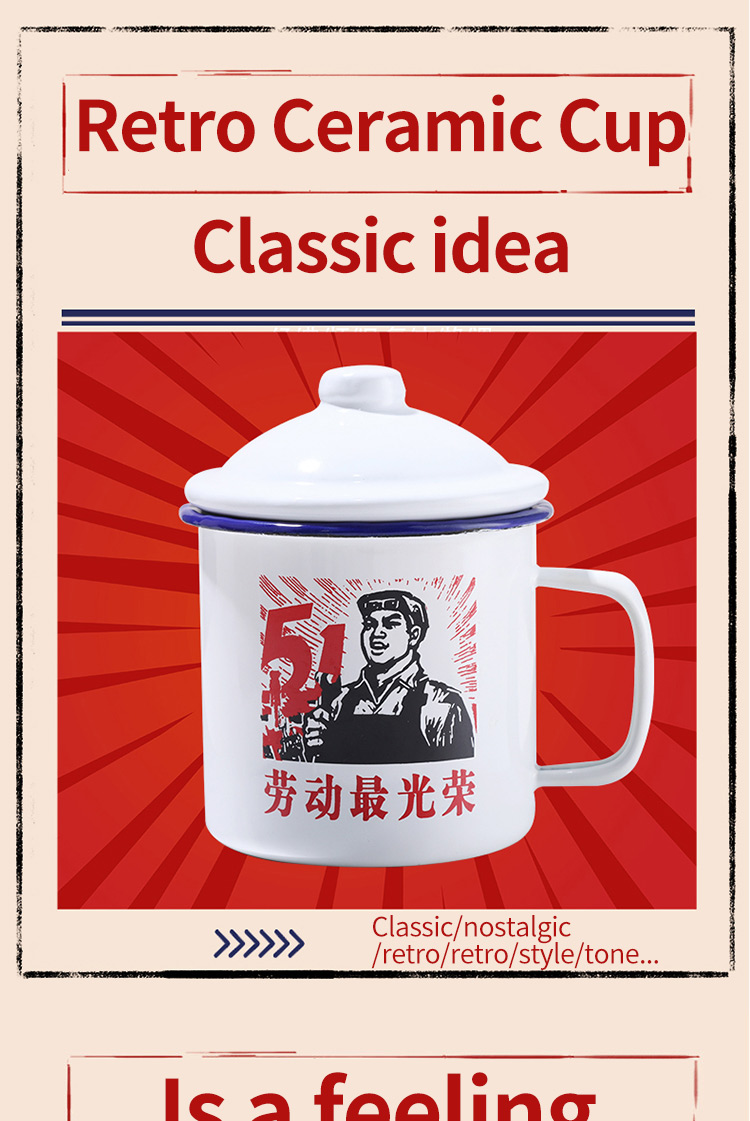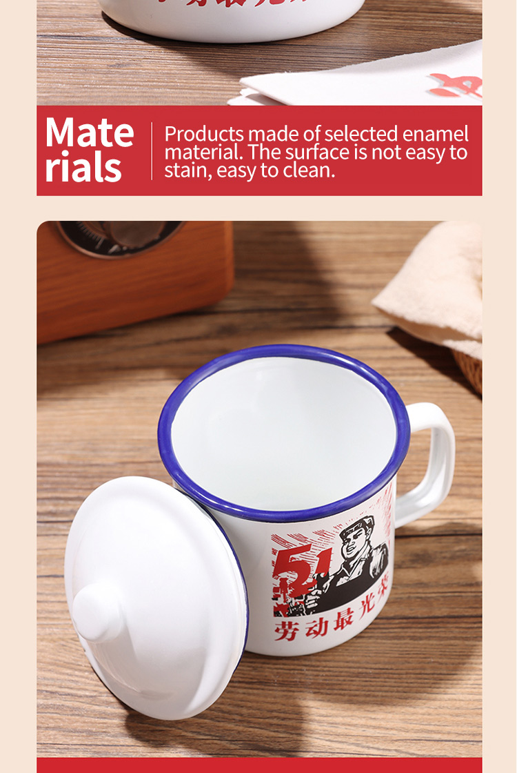 BJ Tasse en émail Le travail est la tasse glorieuse de nostalgie Pot en émail Pot à thé avec couvercle Tasse à boire Grande taille 500 ml