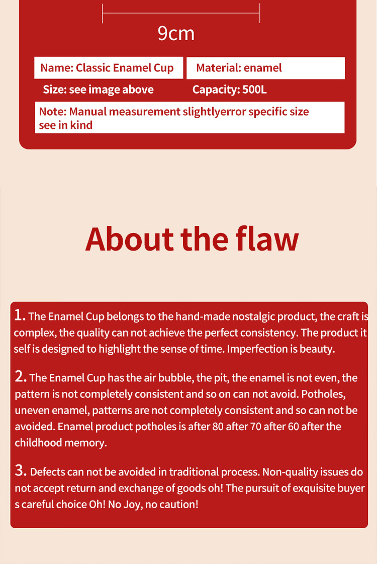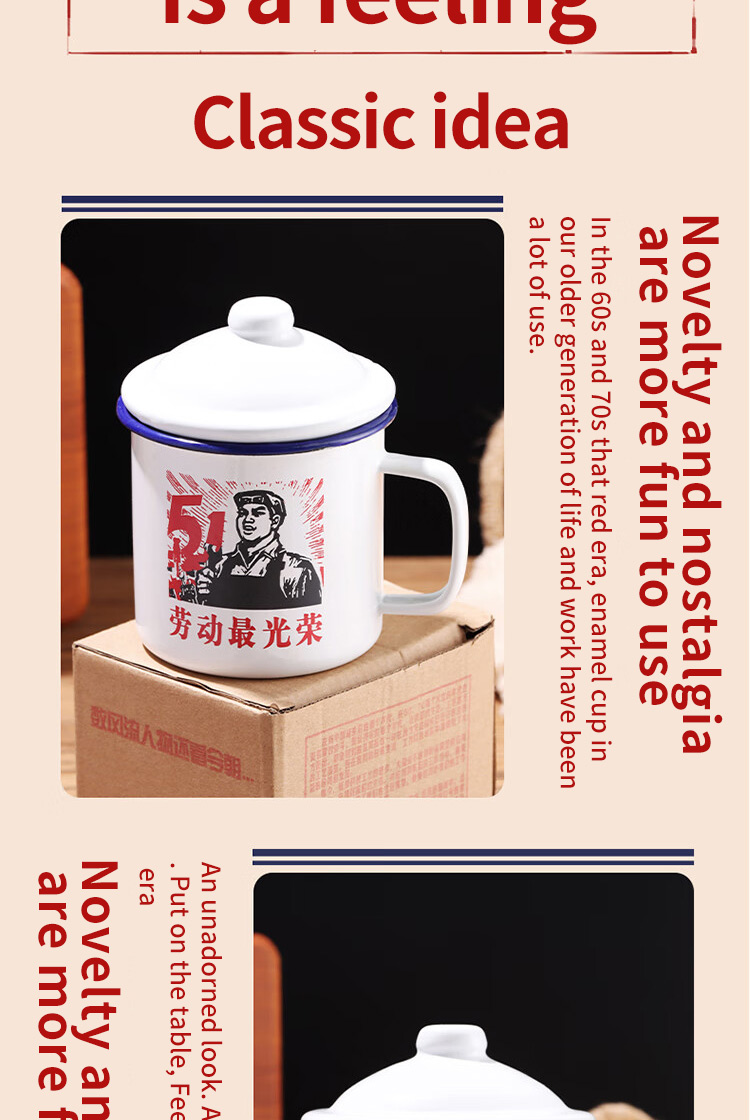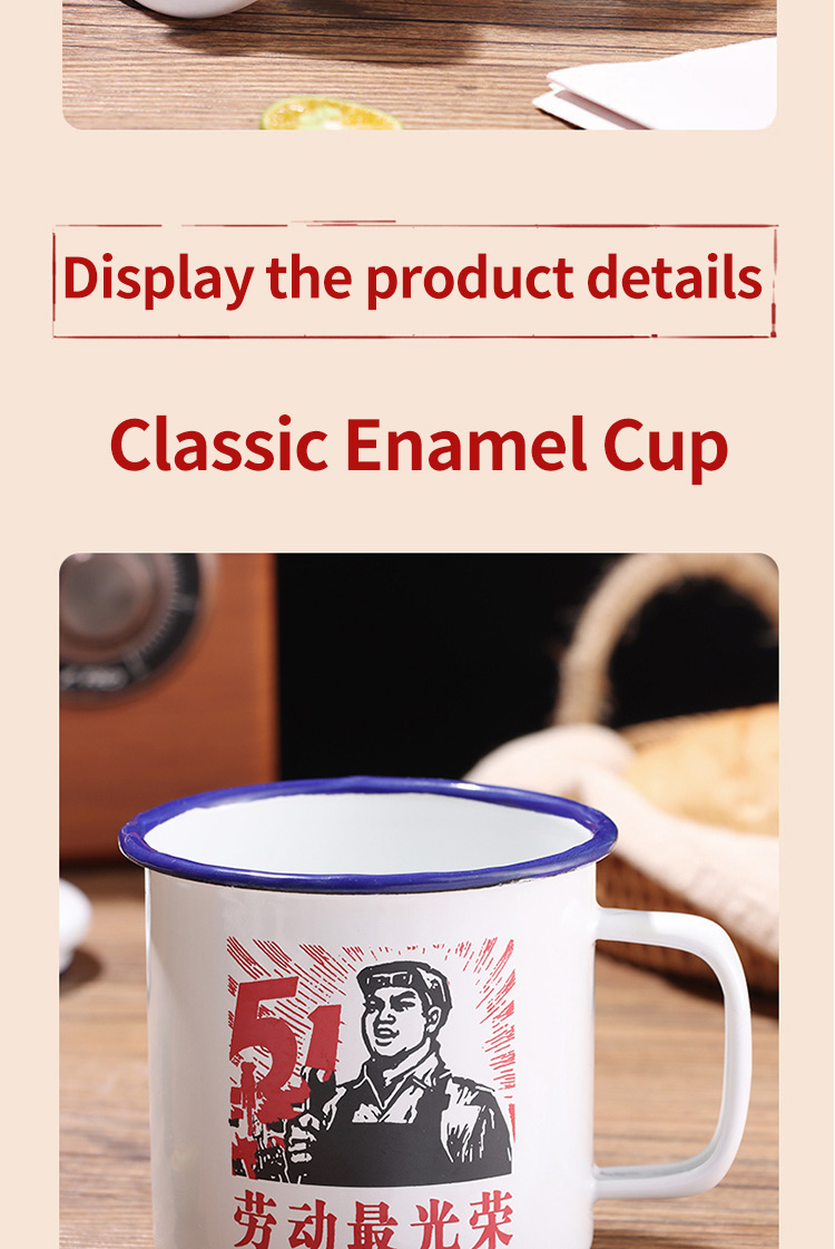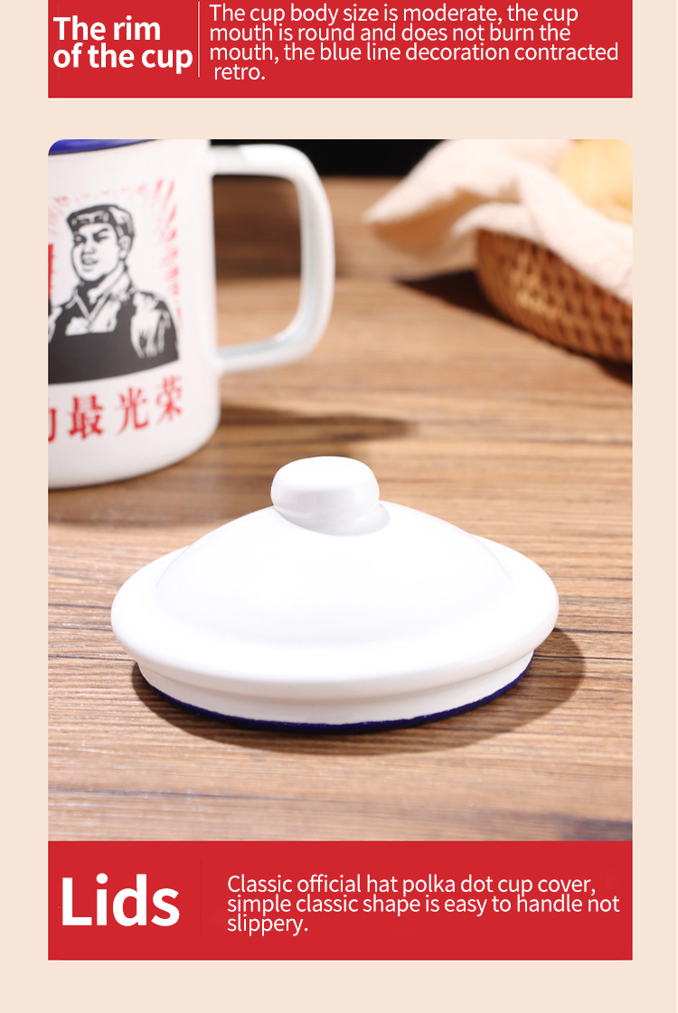BJ Tasse en émail Le travail est la tasse glorieuse de nostalgie Pot en émail Pot à thé avec couvercle Tasse à boire Grande taille 500 ml