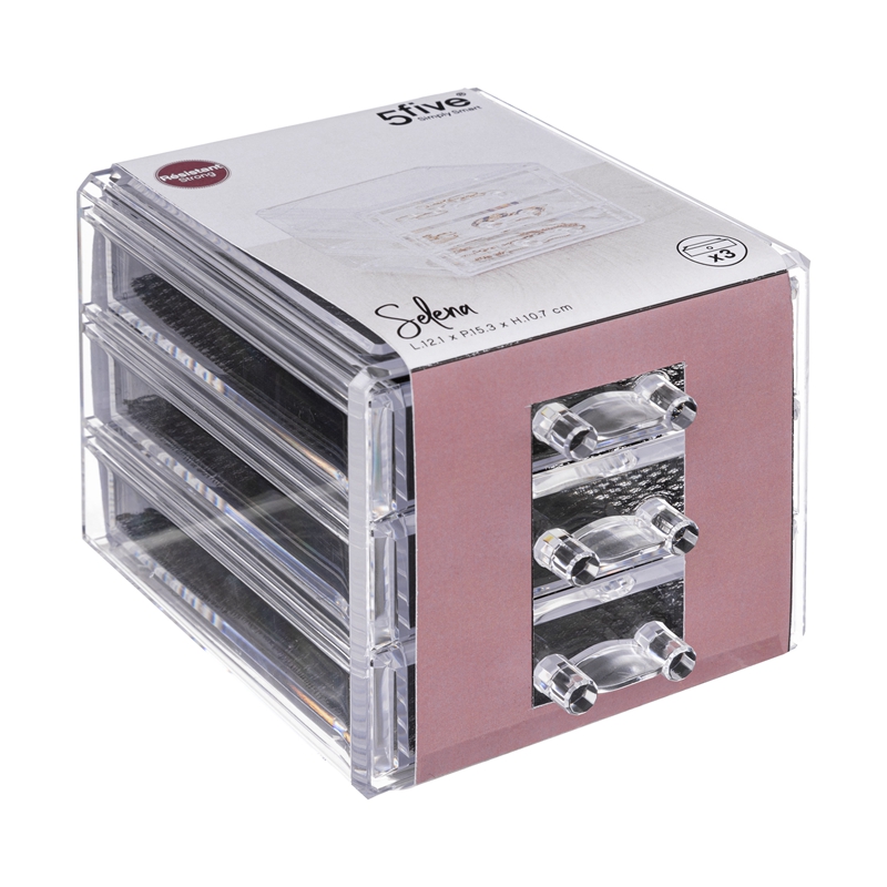 Boîte de Rangement pour Bijoux à 3 Tiroirs - Petite - 15,3 x 12,1 x 10,7 cm