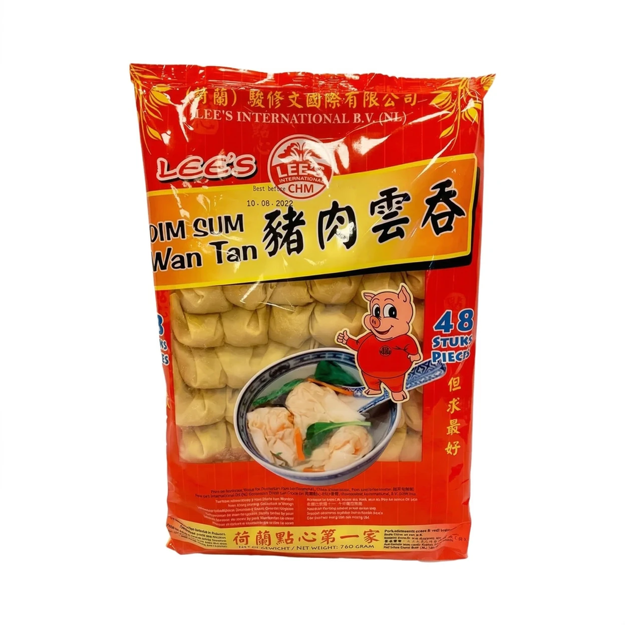 Wonton classique de style hongkongais avec une farce savoureuse au porc, enveloppé dans une pâte de blé fine et lisse.