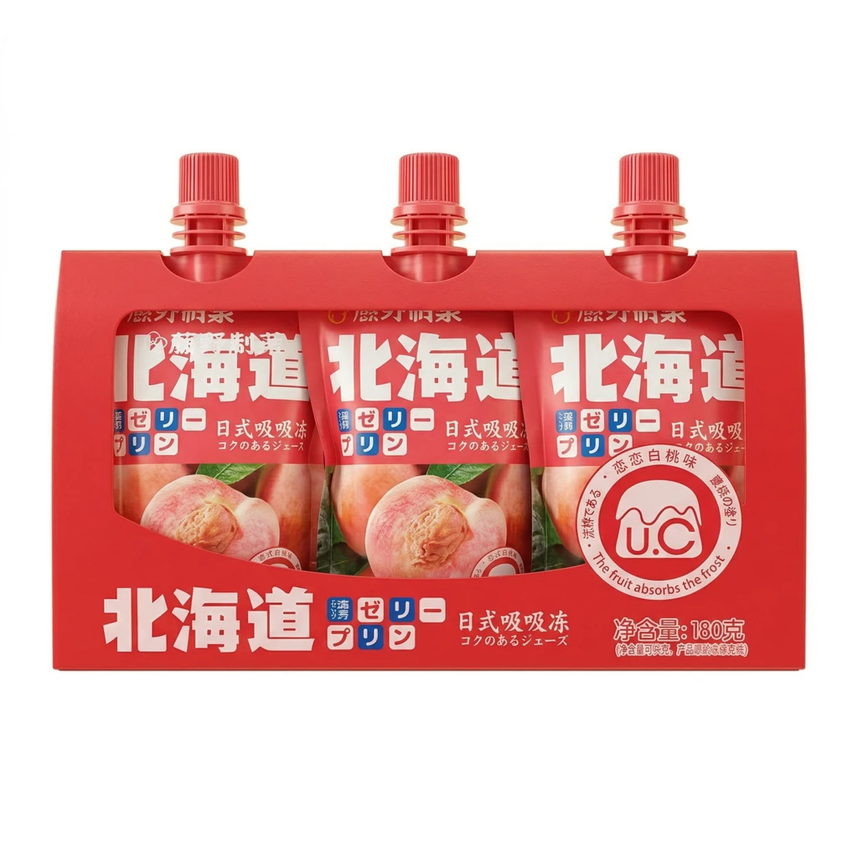 Gelée fermentée au lait de style Hokkaido: Associe du véritable jus de pêche blanche à des bactéries lactiques pour un goût acidulé et rafraîchissant avec un arôme naturel de fruits.