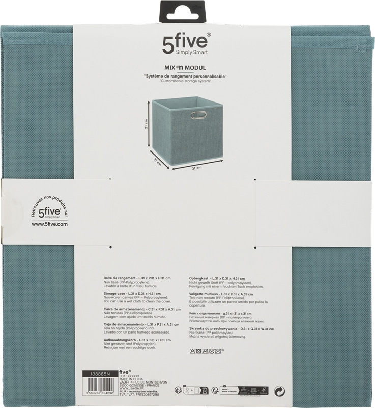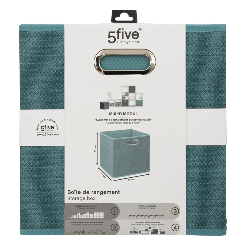 5five Boîte de rangement en lin bleu pétrole - 31 x 31 cm