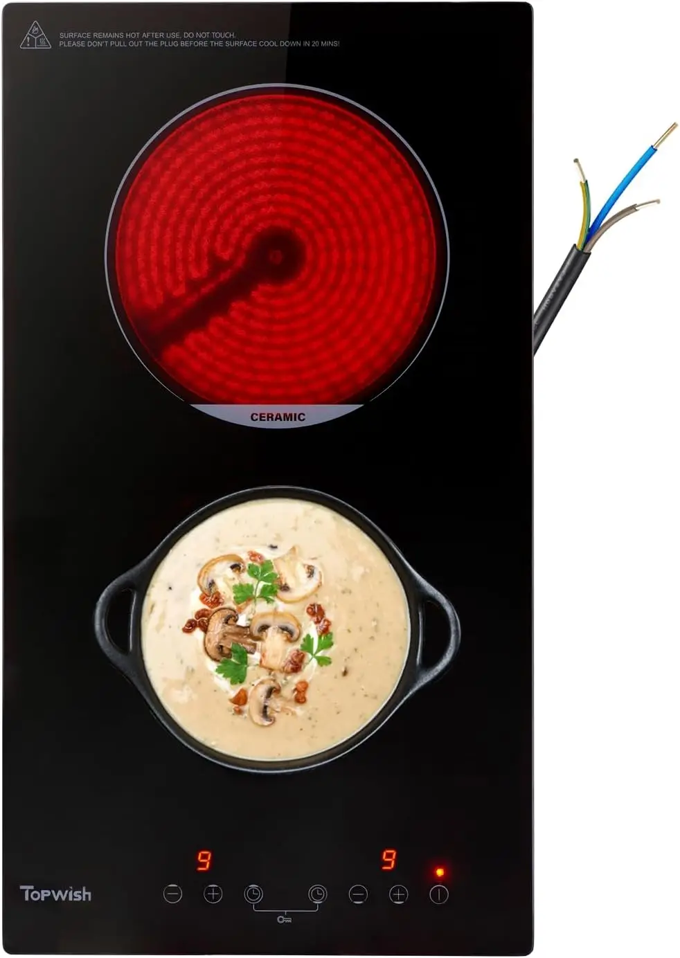 Topwish Plaque vitrocéramique encastrable 2 foyers - 29 cm
