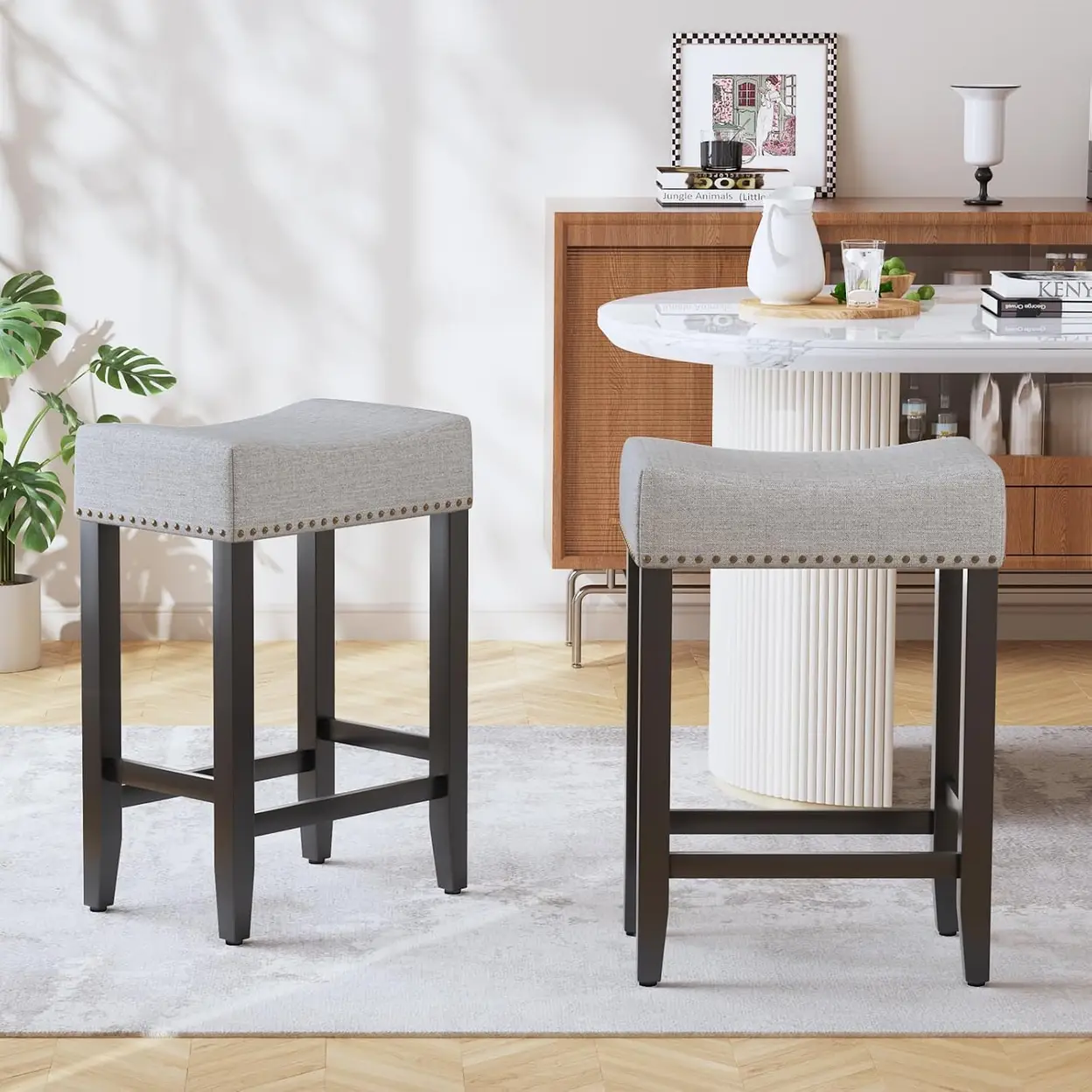 Tabourets de bar Ckaff, ensemble de 2, chaises de bar de 65,5 cm de haut, chaises de cuisine, en lin, chaise de maquillage, chaise de salle à manger, tabouret de salle de bain, tabouret de bureau, tabouret de comptoir avec repose-pieds pour cuisine, salon.
