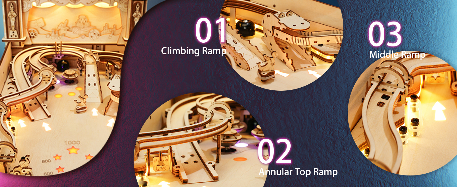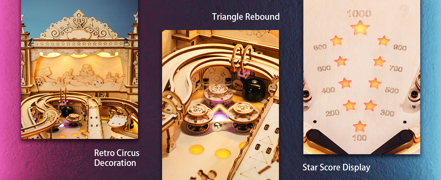 Robotime ROKR Puzzle 3D en bois, Jeu de flipper - 27,5 x 27,5 x 47,5 Cm - 1 Pièce, décoration à la maison, décoration d’étagère,Cadeaux artisanaux pour adultes et adolescents,Jouets éducatifs