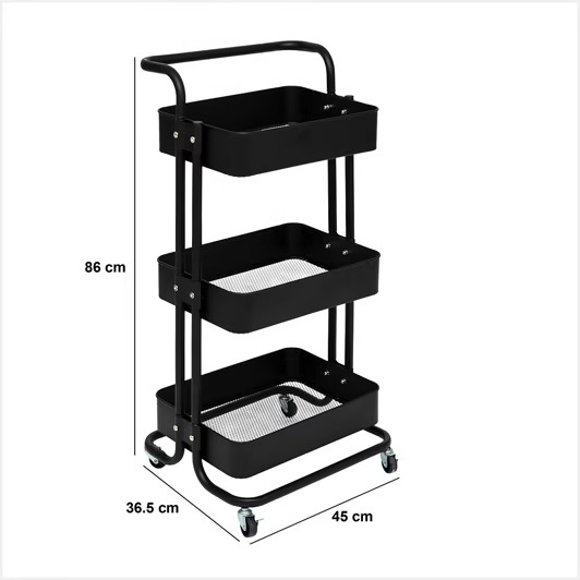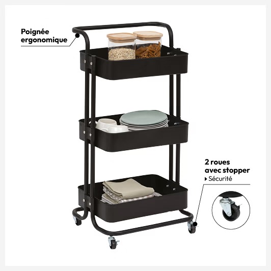 5five Chariot à roulettes à 3 niveaux en métal - Noir
