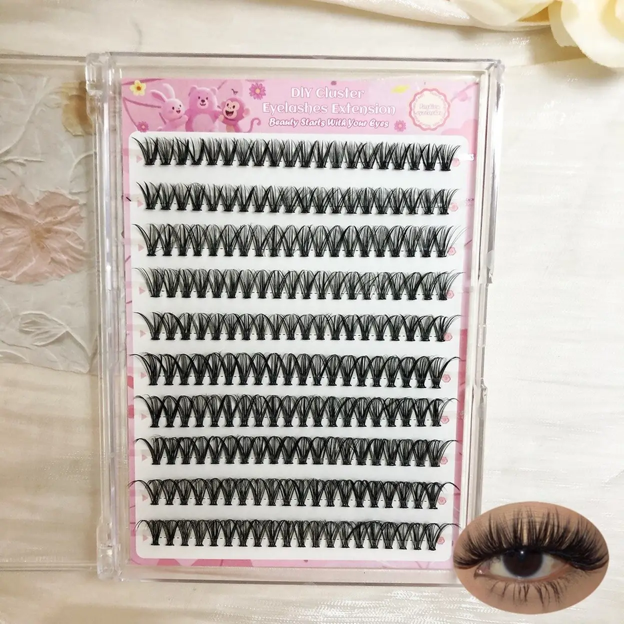 ③ Kit d'extensions de cils classiques avec pince & colle 10 rangs : Inclut les bandes de cils classiques, un flacon de colle à cils dédié et une pince d'application de précision. Un kit de démarrage complet.