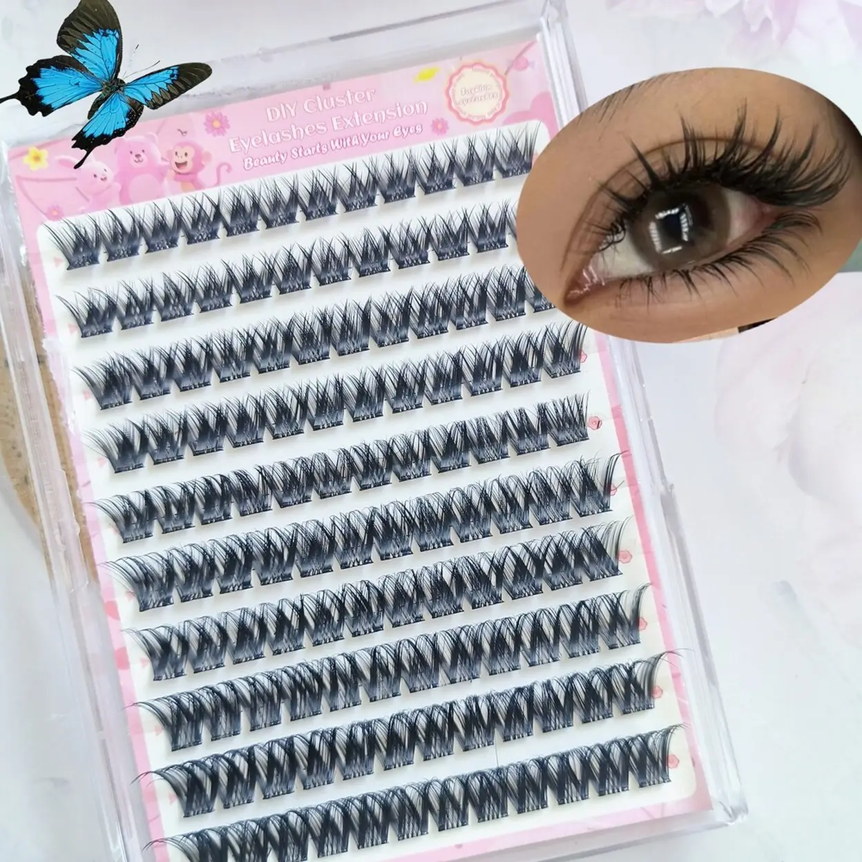 ① Extensions de cils pré-collés - 10 rangées : les cils viennent avec de la colle pré-appliquée sur le bouquet. Aucune colle supplémentaire n'est nécessaire. Il suffit de décoller et d'appliquer.