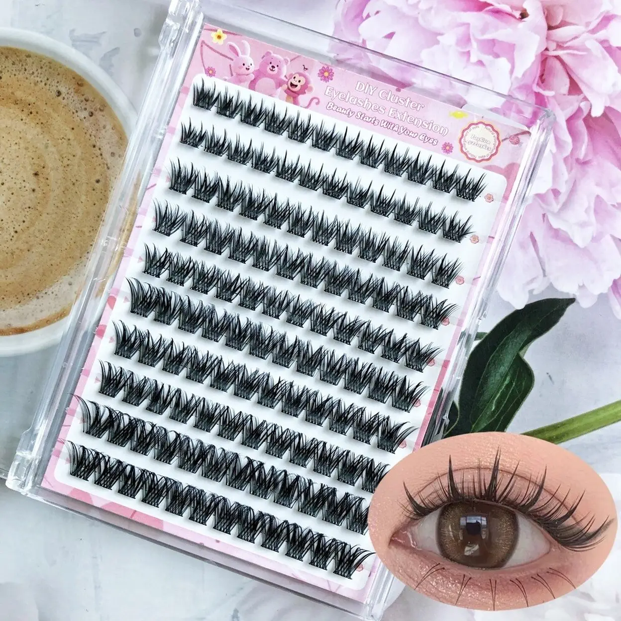 ④ Kit de cils pré-collés avec pinceaux 10 rangées : Comprend les bandes de cils pré-collées et une pince à application précise. Aucune bouteille de colle n'est nécessaire car l'adhésif est pré-appliqué.