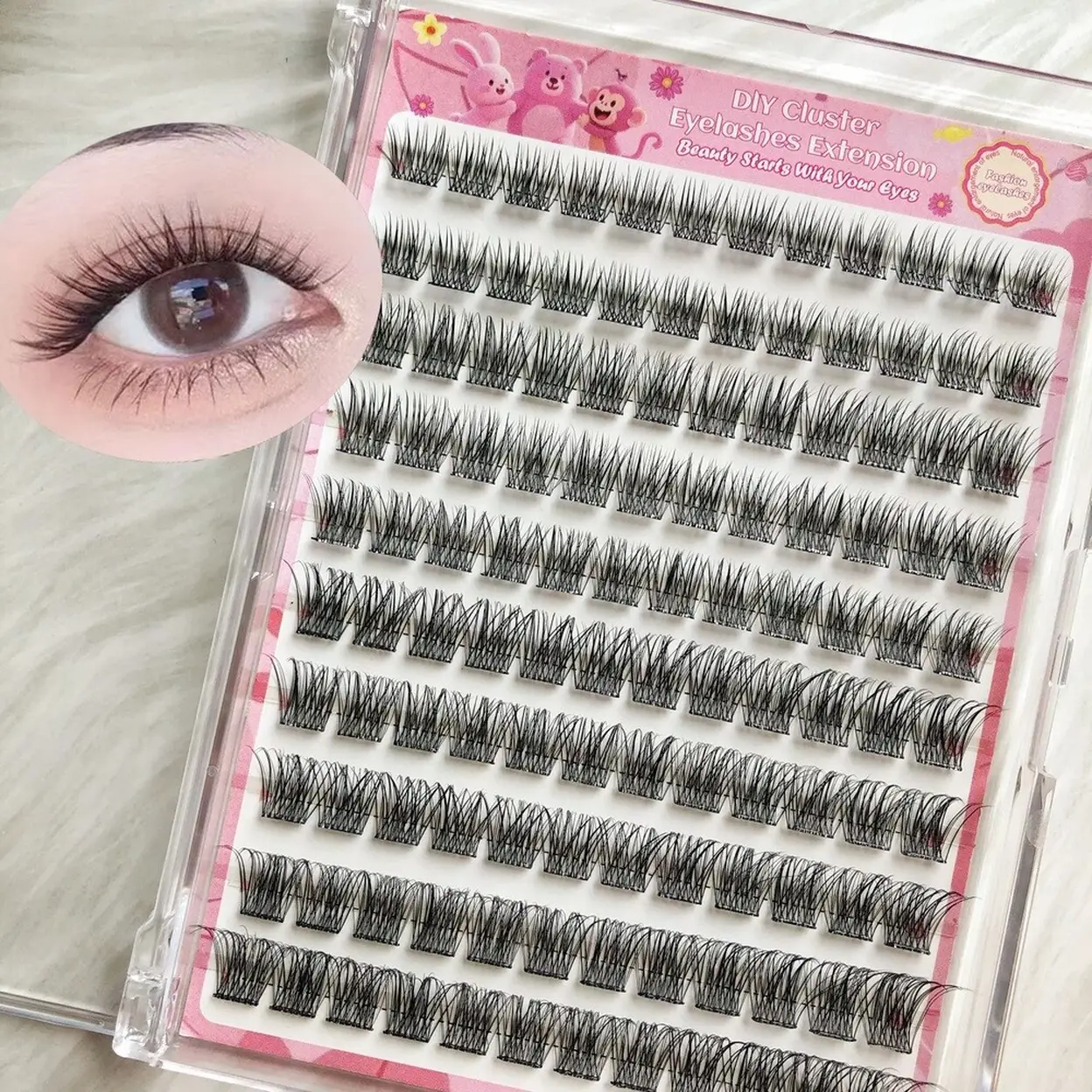 ③ Kit d'extensions de cils classiques avec pince & colle 10 rangs : Inclut les bandes de cils classiques, un flacon de colle à cils dédié et une pince d'application de précision. Un kit de démarrage complet.