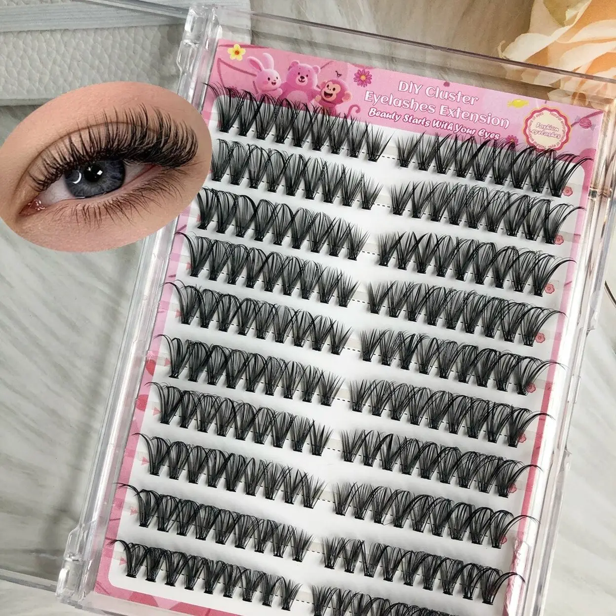 ④ Kit de cils pré-collés avec pince - 10 rangées : comprend les bouquets de cils pré-collés et une pince précise. Aucune bouteille de colle n'est nécessaire car l'adhésif est pré-appliqué.