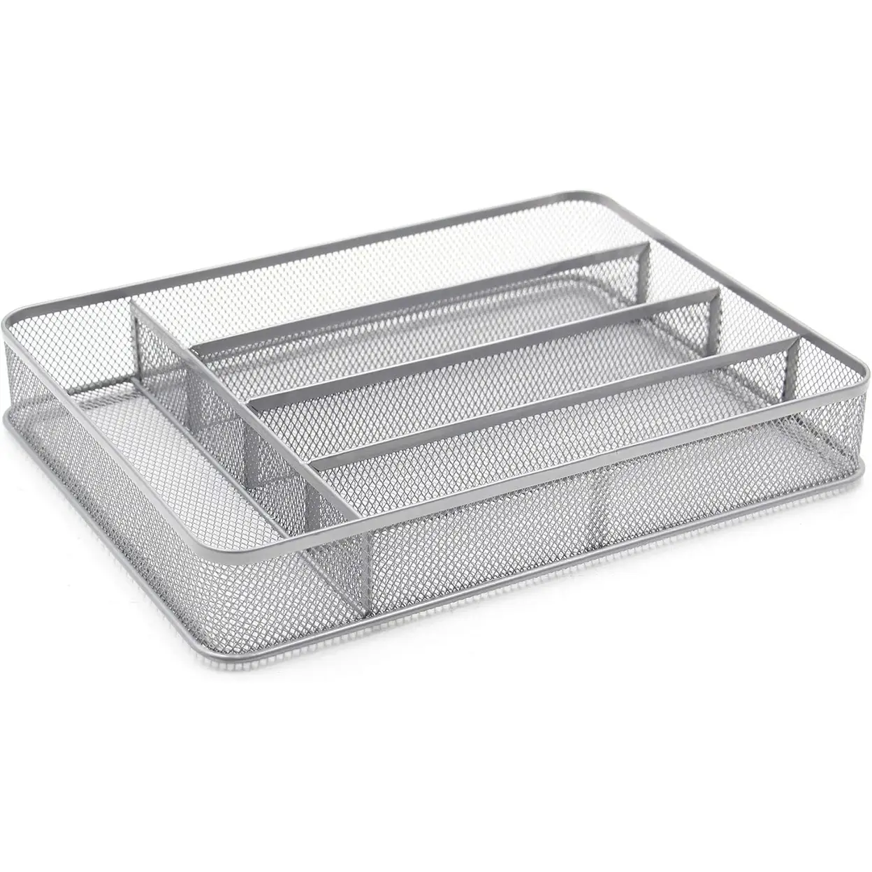 • Organisation à cinq compartiments : Configuration de fentes optimisée pour un rangement efficace des couverts et ustensiles, proposant des emplacements pour couteaux, fourchettes, cuillères et autres outils de cuisine dans un design rectangulaire compact.