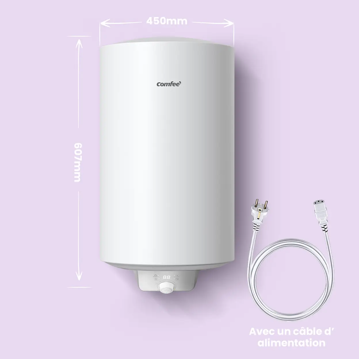 COMFEE D50-15EFG Chauffe-eau électrique mural à réservoir, 50 L, contrôle à distance, classe énergétique B - Blanc