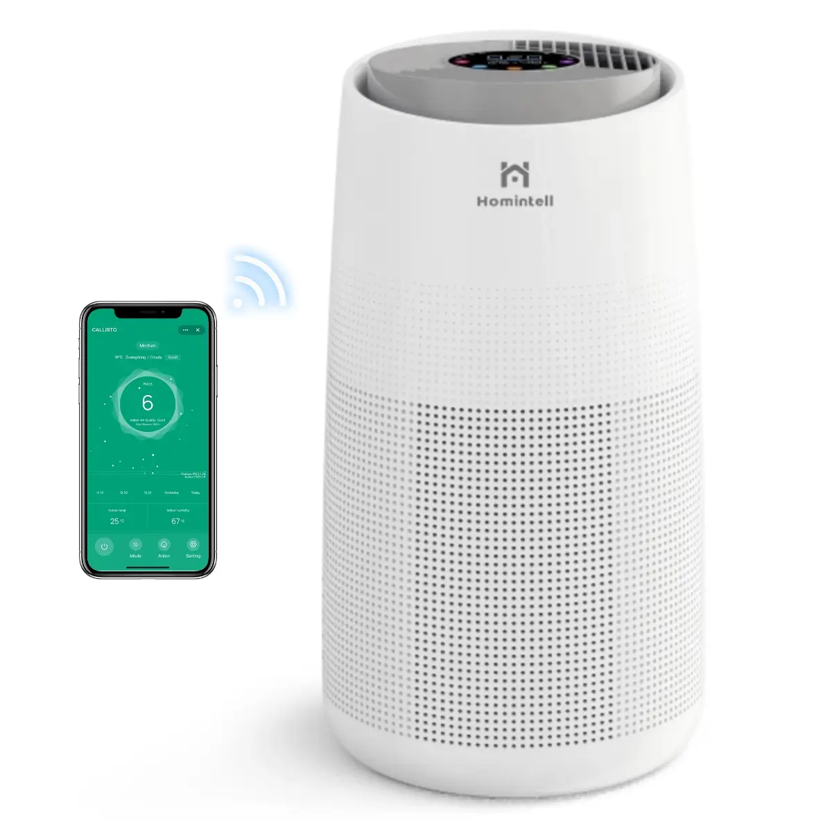 Homintell Callisto Purificateur d’air intelligent avec contrôle Wi‑Fi, filtre HEPA H13, pour les pièces de 36 m²