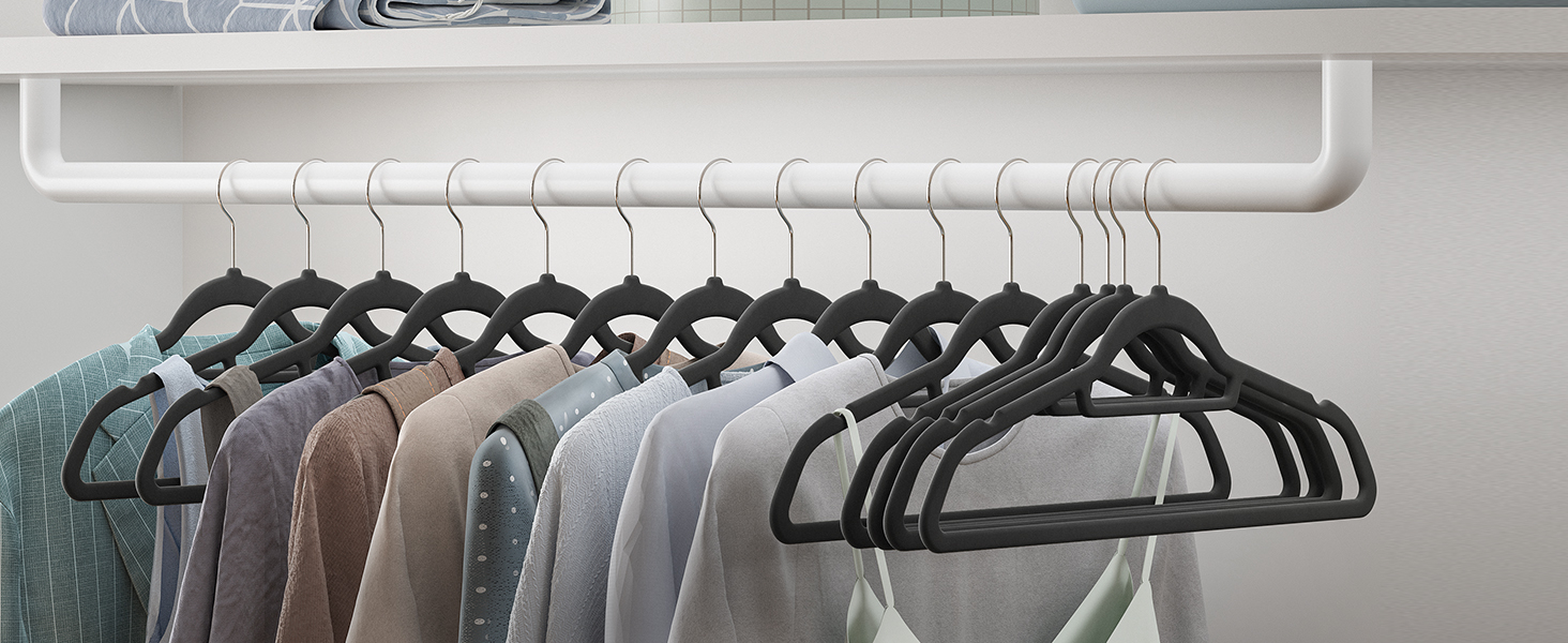 Offre une surface en velours douce pour éviter que les vêtements ne glissent et pour protéger les tissus délicats, idéal pour les chemisiers, les robes et les costumes dans les placards ou les présentoirs de vente.
