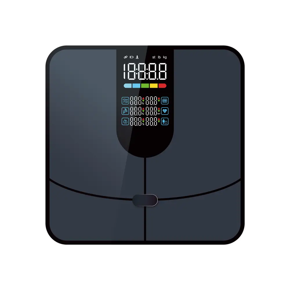 Balance connectée impédancemètre avec écran LED couleur, 25 indicateurs corporels et verre ITO - Capacité 200 kg