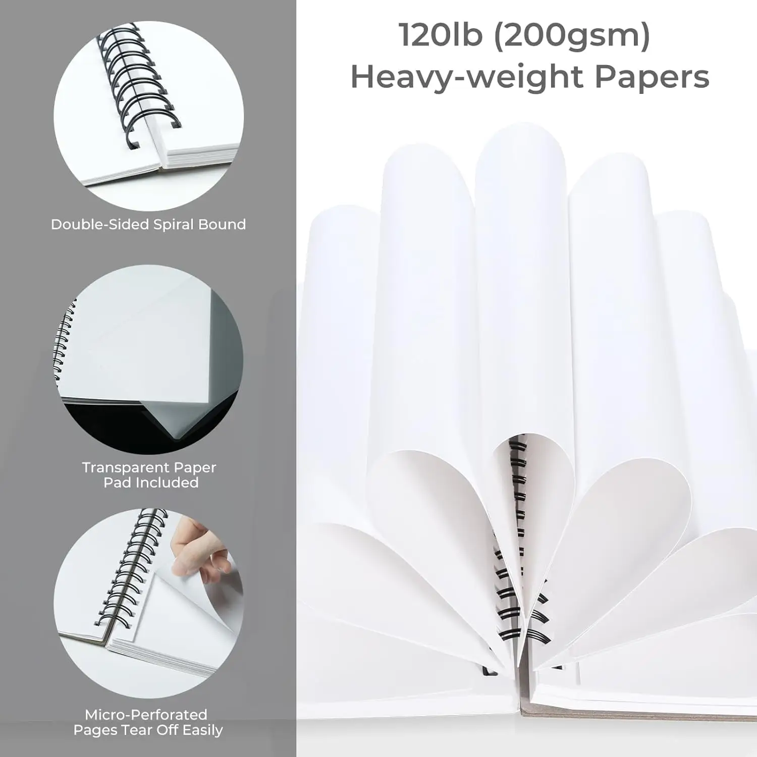 • Équipé d'une reliure spirale pour un maintien plat pratique et de pages micro-perforées qui permettent un détachement propre sans endommager le carnet, parfait pour l'encadrement ou l'exposition dans un portfolio.