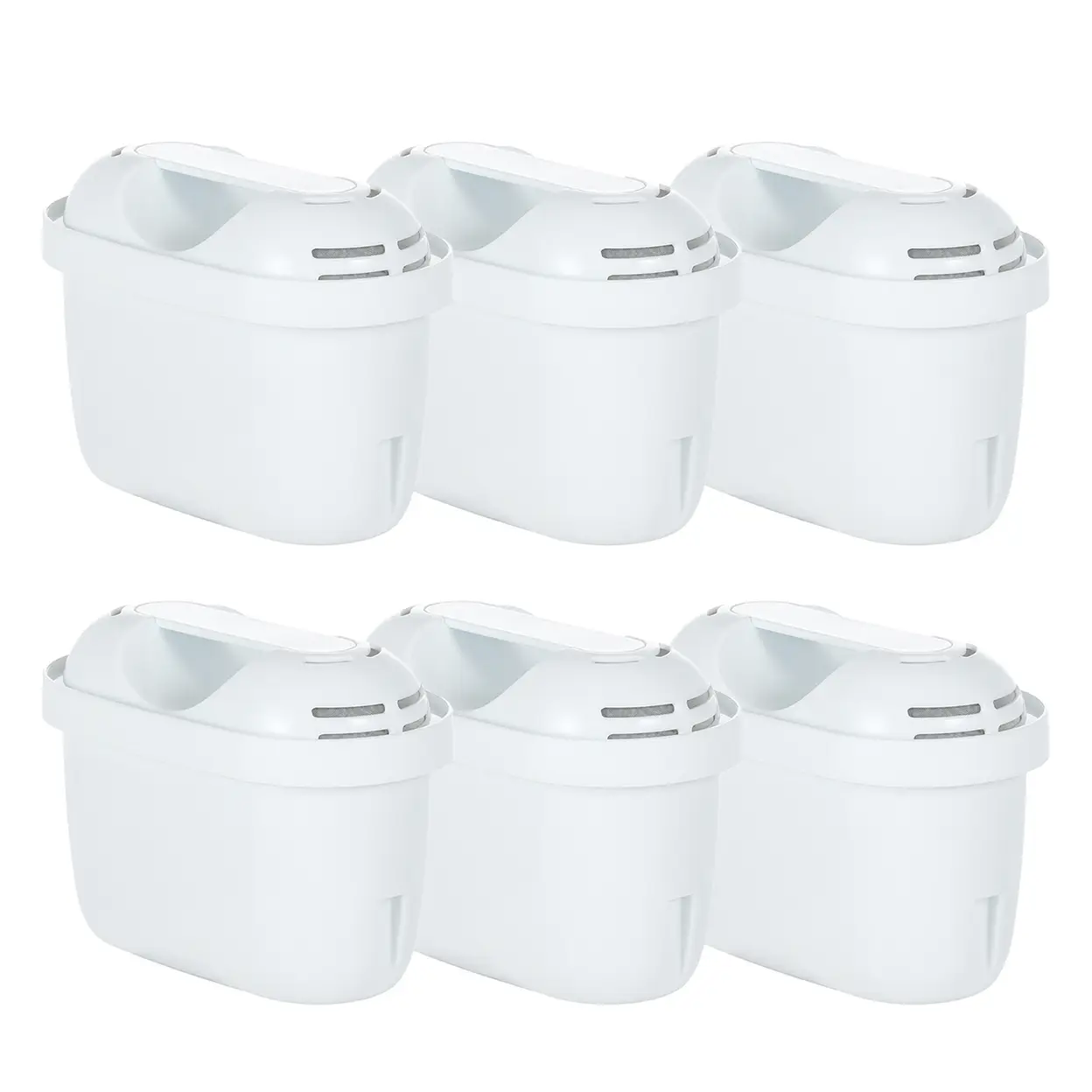 Pack de 6 Filtres à Eau VIVREAL Compatibles avec les Carafes Brita, Filtration Multicouche Éliminant le Chlore, le Calcaire et les Métaux Lourds, Matériau Sécurisé de Qualité Alimentaire, Design à Double Canal, Efficace et Écologique F002