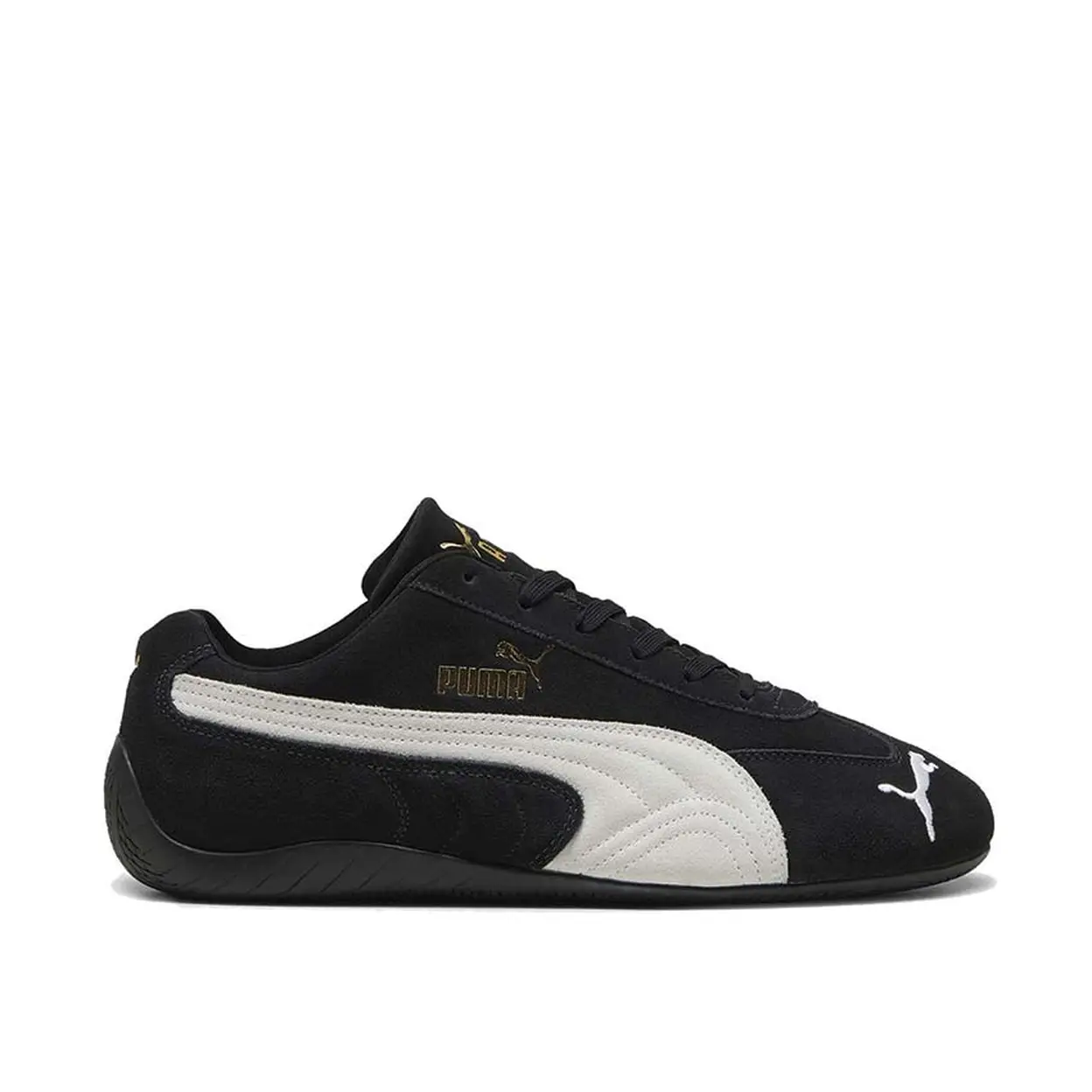Détails emblématiques de la marque Puma, y compris une bande de forme en suède et un logo de chat brodé