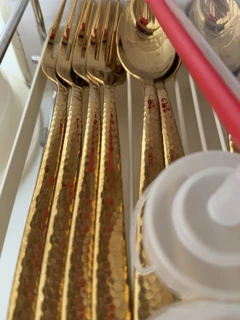 FangYuan Ensemble de 16 couverts en acier inoxydable texturé compatible lave-vaisselle - Or