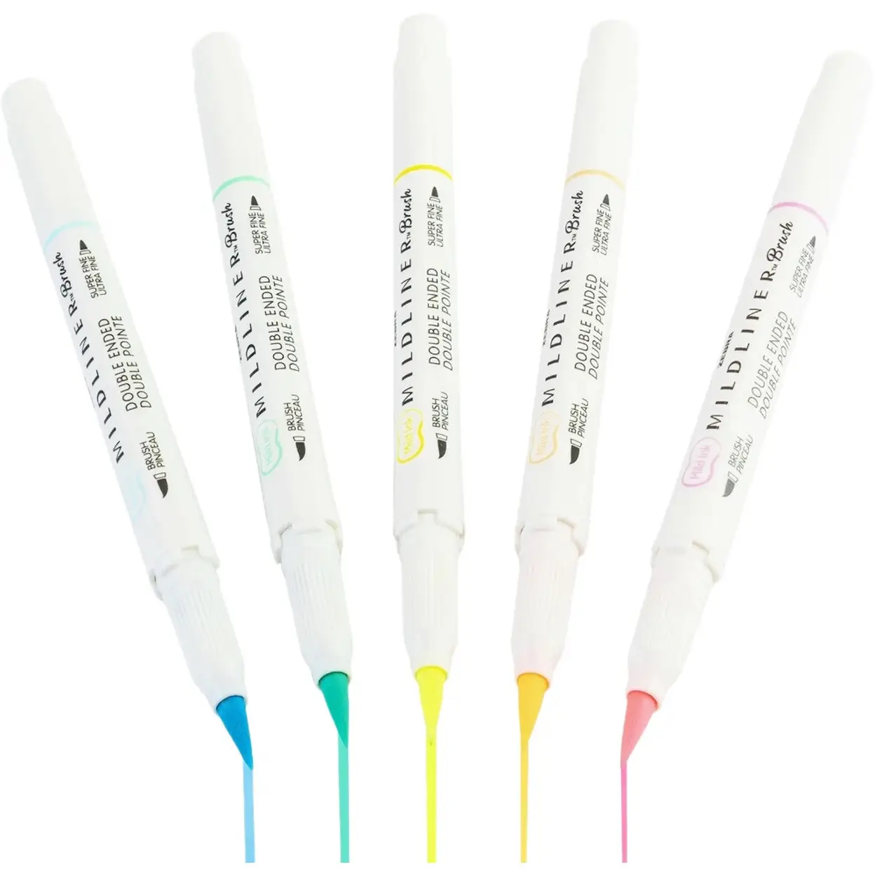 Zebra Mildliner Lot de 5 marqueurs pinceau à double pointe, couleurs fluorescentes