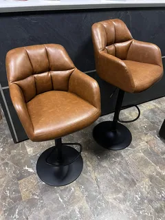 Ensemble de 2 tabourets de bar en cuir PU pivotant pour cuisine et petit-déjeuner, tabouret de comptoir moderne réglable (marron)
