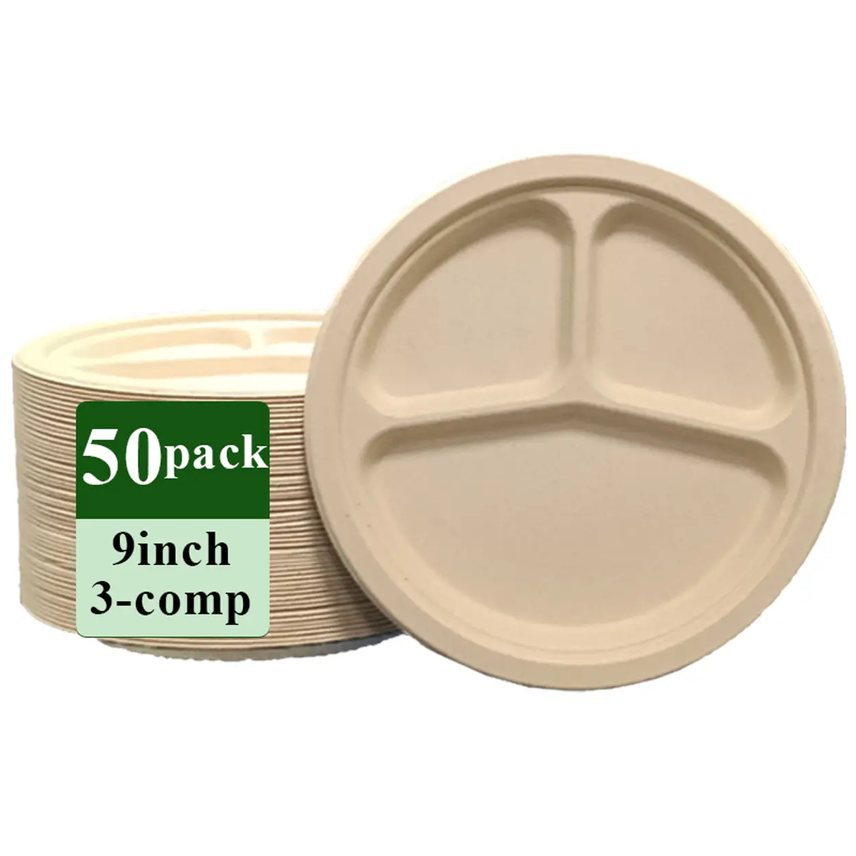 Assiette Jetable en Fibre de Bambou Ruibamboo 9 Pouces à 3 Compartiments - Lot de 50