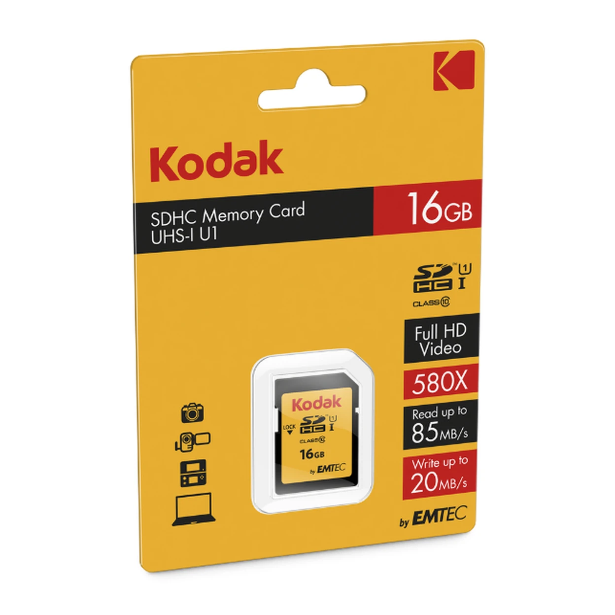 Kodak Carte mémoire SD 16 Go UHS-I U1 V10 de qualité supérieure