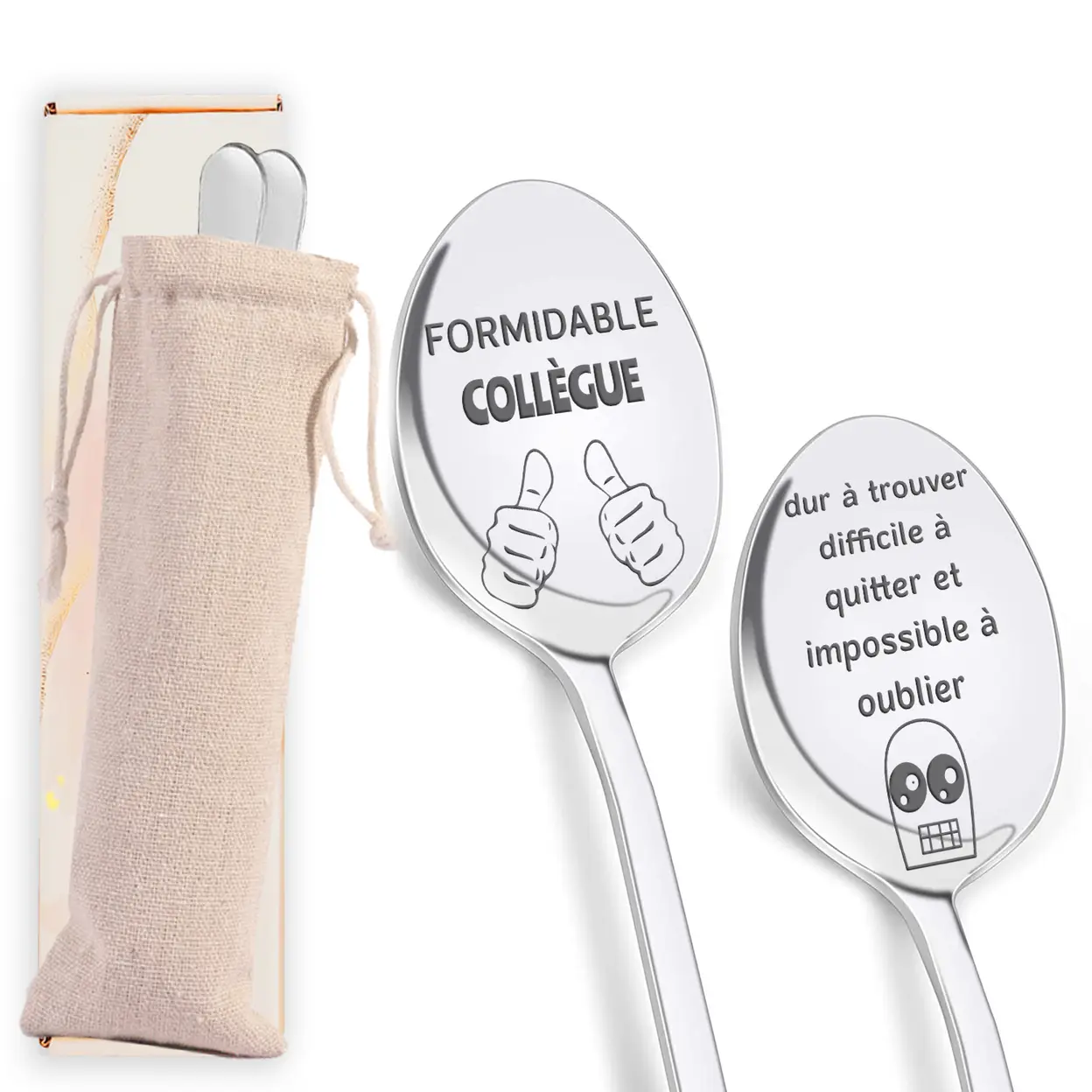 Alphynix Collection de 2 cuillères d'appréciation française, couverts à thème "Collègue Exceptionnel" avec citation "Difficile à trouver, difficile à quitter, impossible à oublier", inclus pochette cadeau,Le cadeau de la saint-valentin, cadeau d’anniversaire