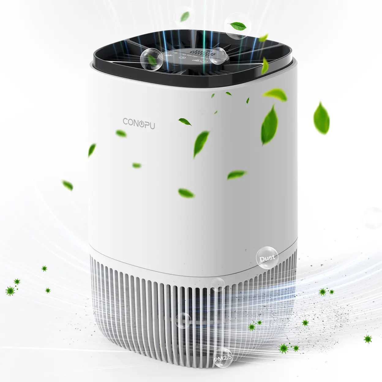 Améliorez la qualité de l'air intérieur avec le Purificateur d'air HEPA CONOPU, conçu pour fournir un air pur et frais à votre maison, chambre, bureau et grands espaces de vie. Conçue pour éliminer efficacement la fumée, le pollen, les squames d'animaux, les cheveux, la poussière et les odeurs désagréables, elle aide à créer un environnement plus sain pour vous et votre famille.