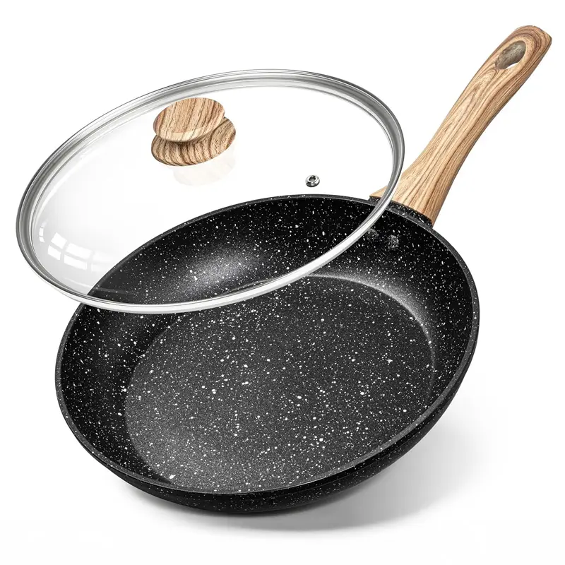 Poêle Antiadhésive Michelangelo 10 pouces avec Couvercle, Poêle à Œufs à Revêtement Marbre Noir, Compatible Induction, Modèle 130227
