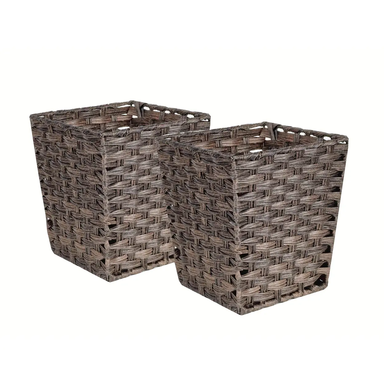 KEVAHOME Lot de 2 paniers à déchets en polypropylène aspect rotin - marron foncé - 10 x 10 x 11 pouces H