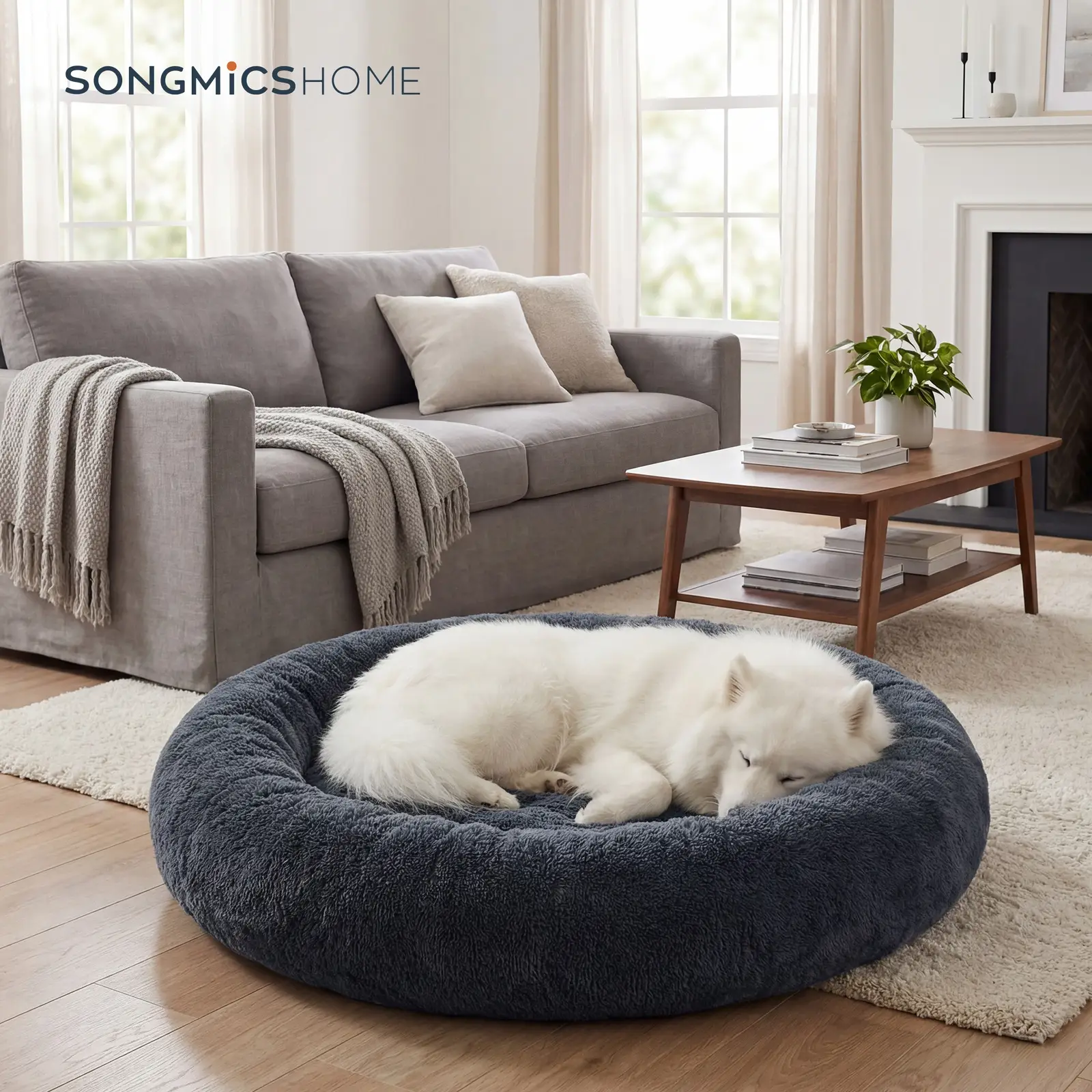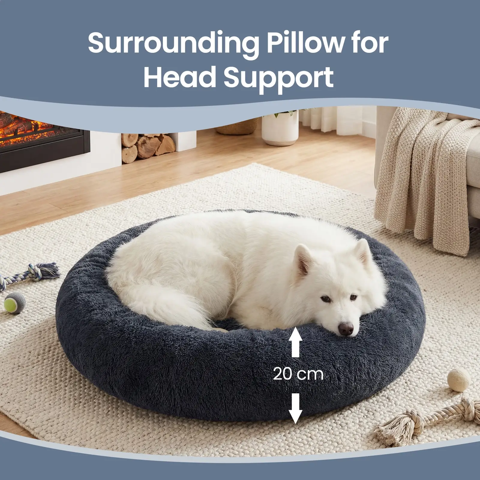 SONGMICS Panier pour chien en peluche en forme d’anneau avec housse amovible lavable gris foncé - 140 x 20 cm