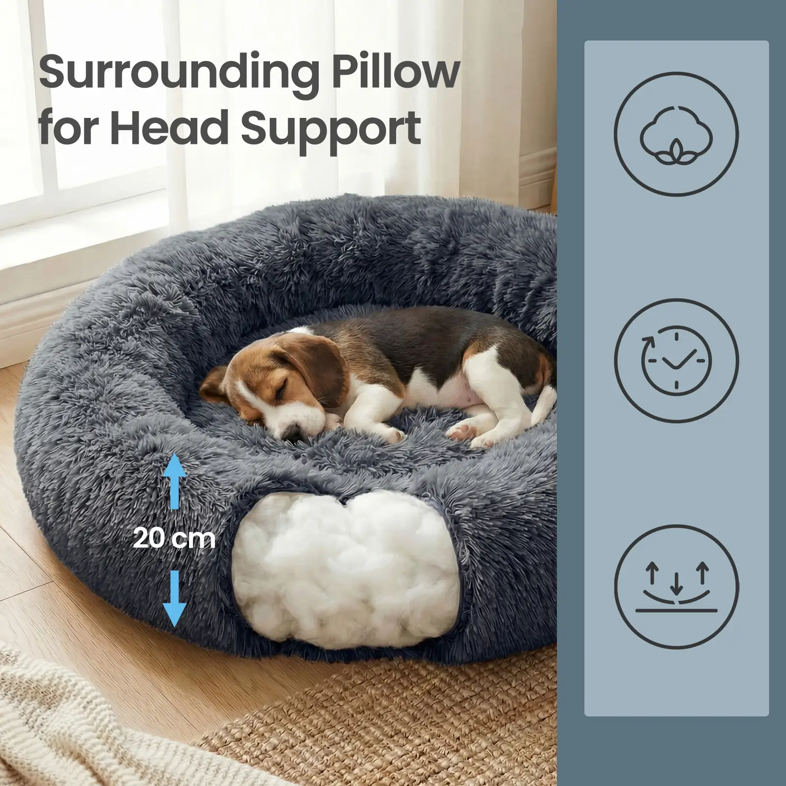SONGMICS Lit en donut pour chien, moelleux et apaisant, avec housse amovible et lavable, gris foncé, 70 x 20 cm