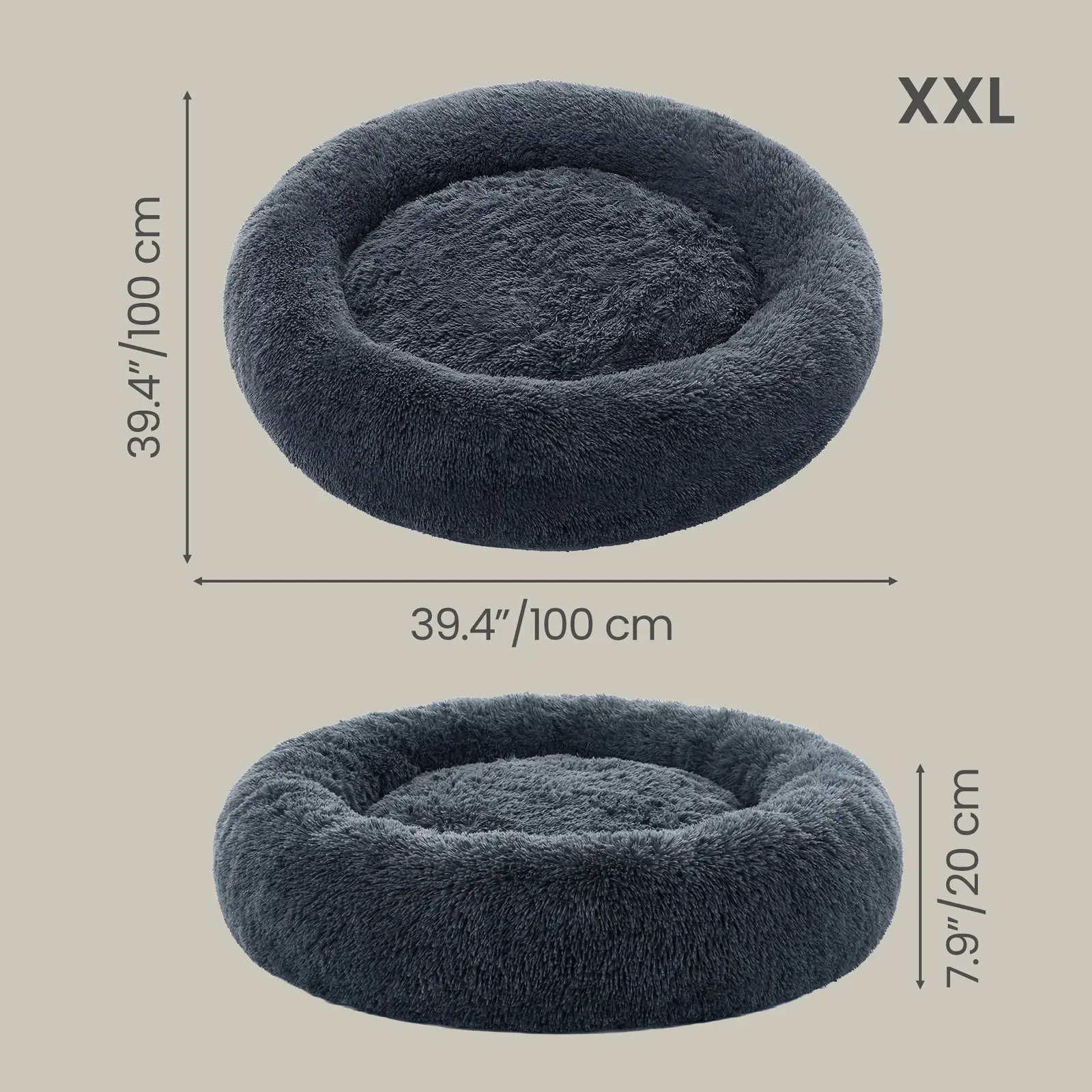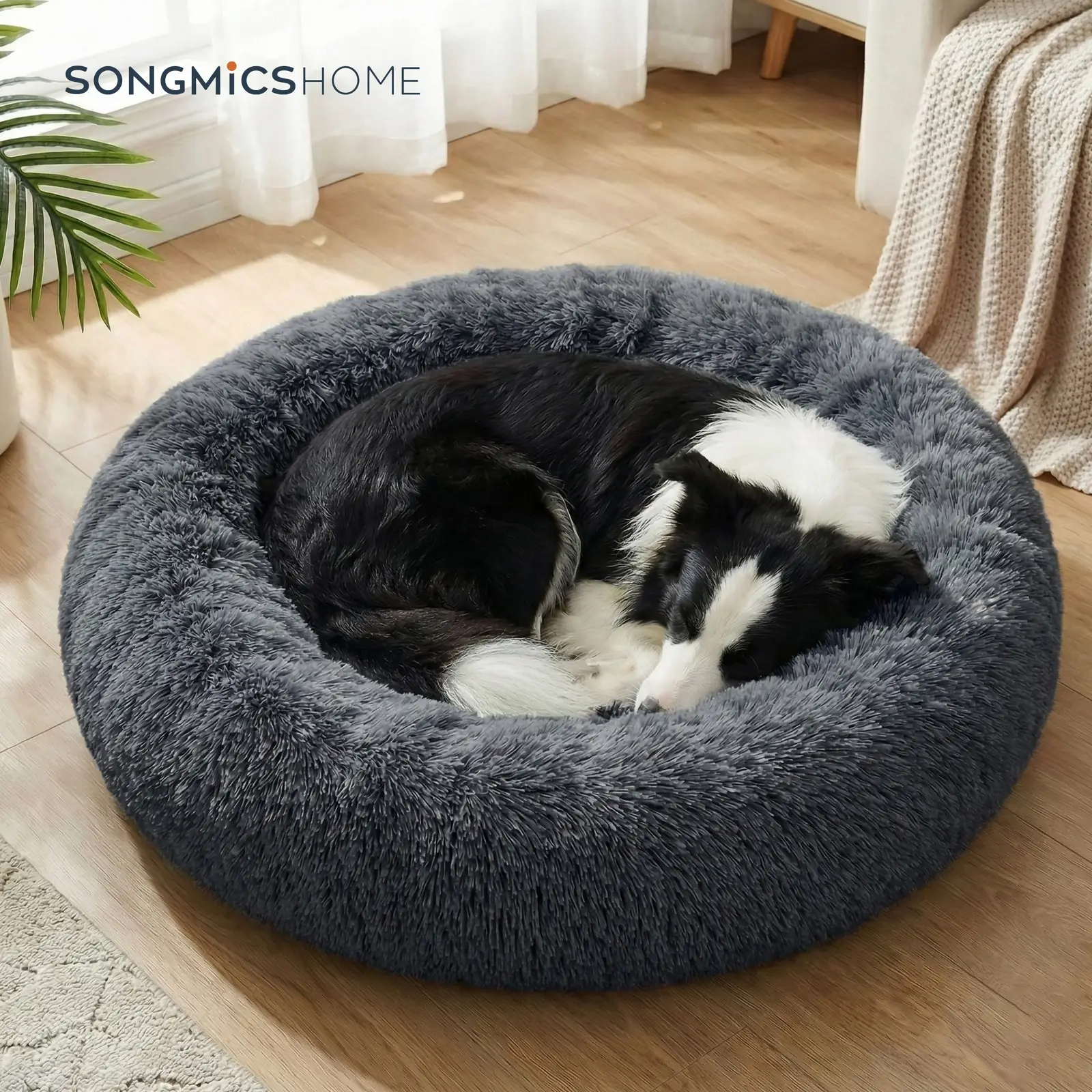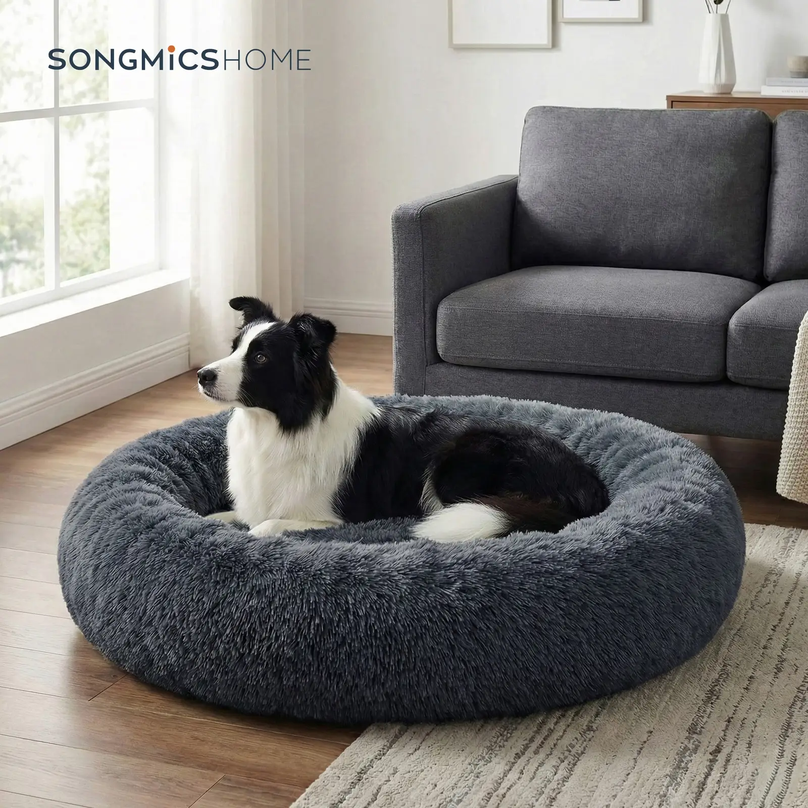 SONGMICS Lit donut pour chien avec housse amovible et lavable gris foncé - Ø 100 cm