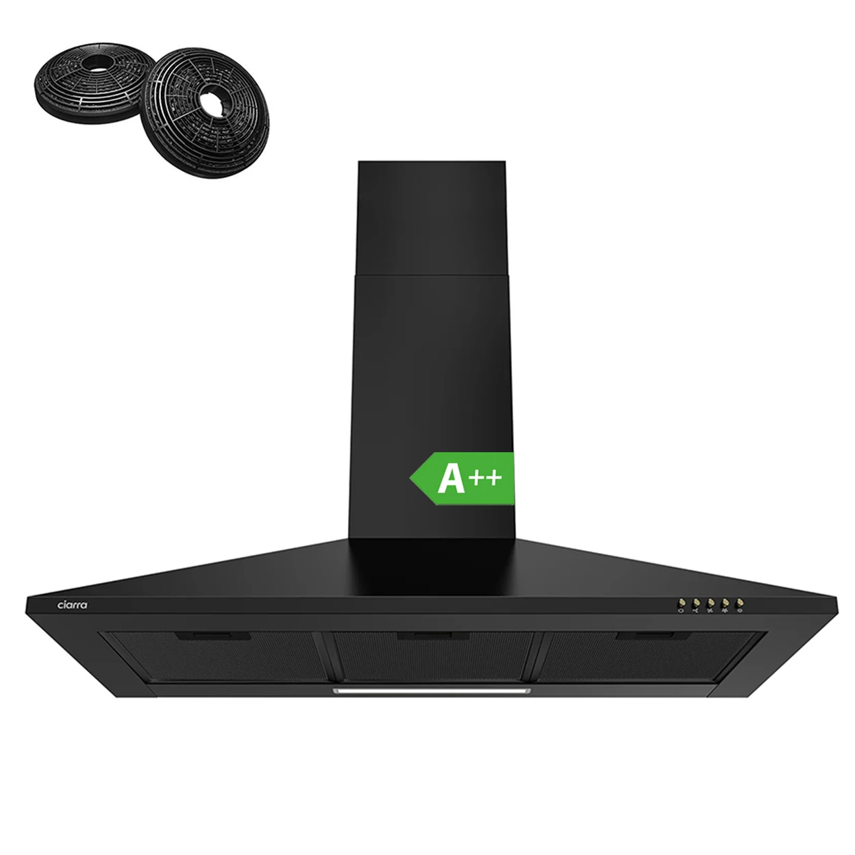 CIARRA Hotte murale noir mat, débit d'air 370 m³/h, classe énergétique A++, évacuation et recyclage, 3 vitesses - 90 cm