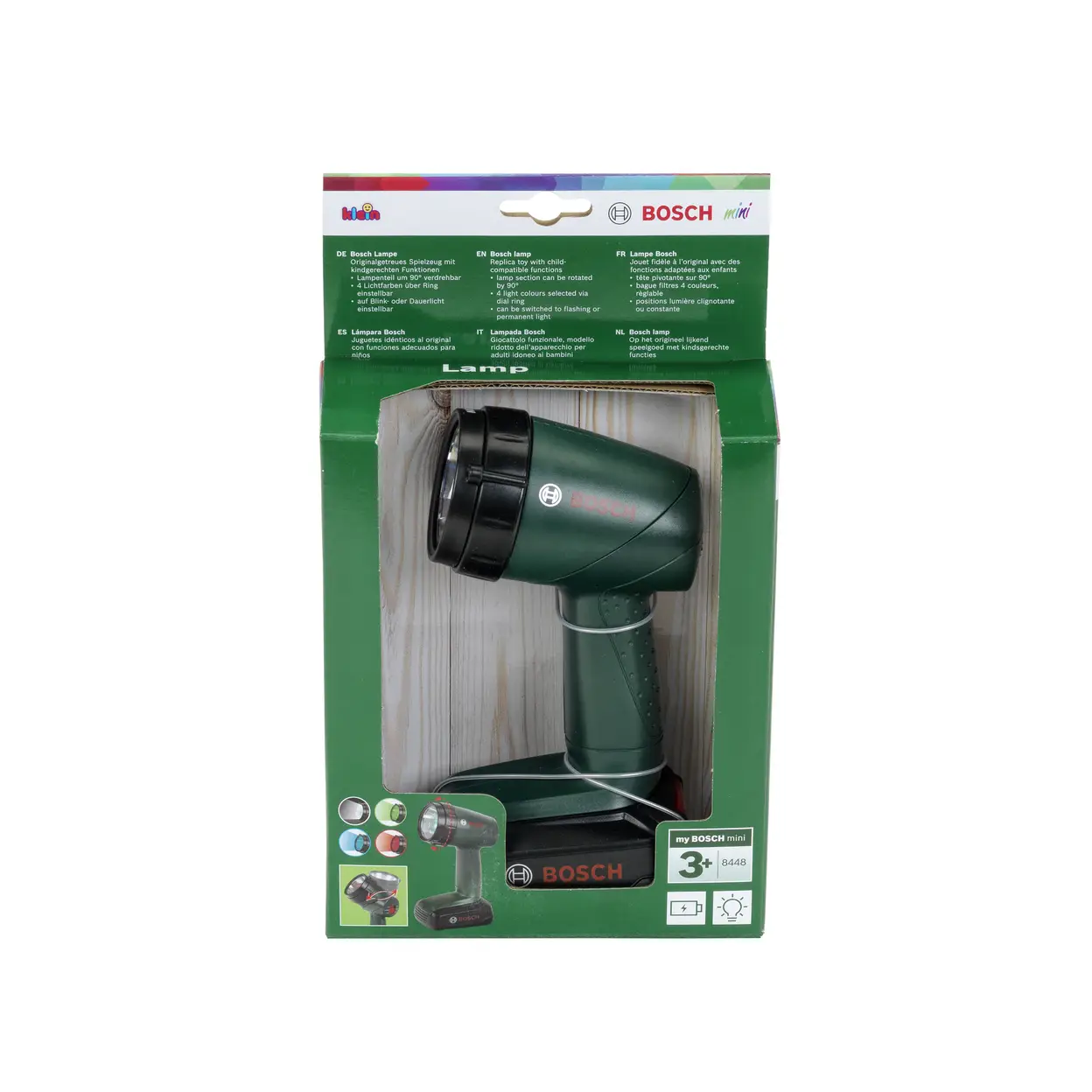 | Composants inclus | Lampe torche BOSCH avec tête pivotante et filtres de couleur |