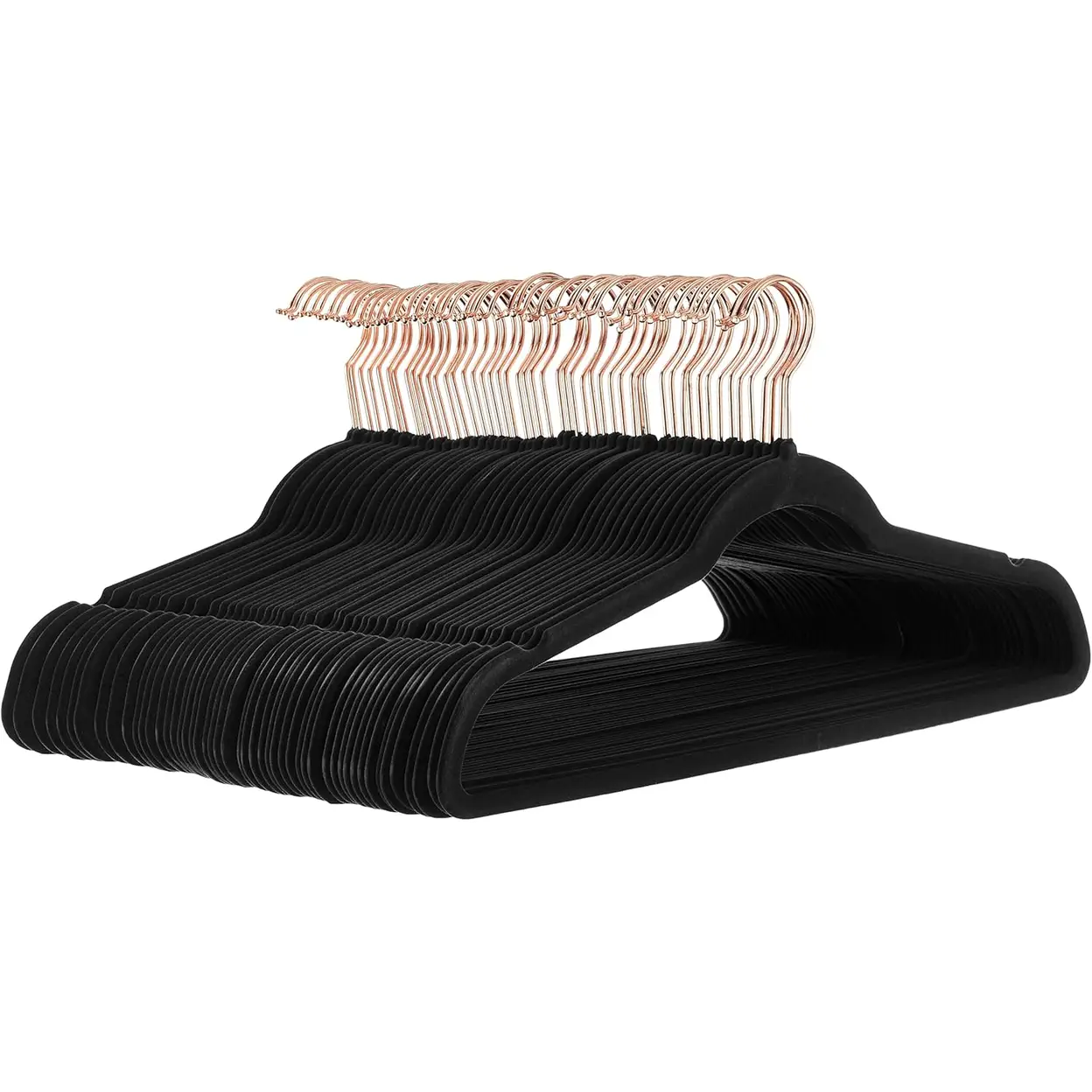 ANQI Cintres en velours antidérapants pour vêtements de costume - Noir/Or rose - Lot de 50