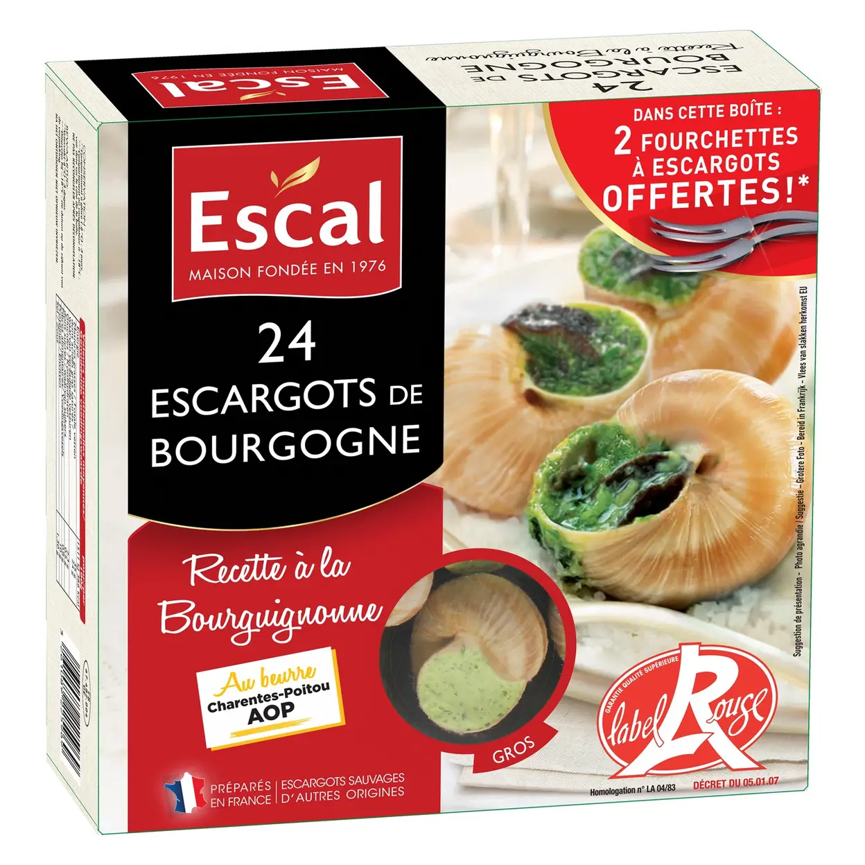 ESCAL 24 Escargots Label Rouge + 2 Fourchettes, calibre gros 194g
