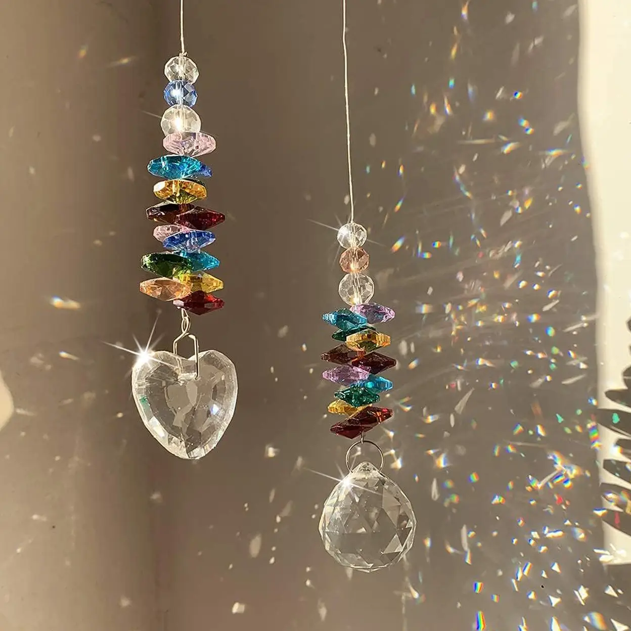 JU7CER Lot de 2 Suspensions Boule Cristal Cœur Arc-en-Ciel - Prism Cœur Multicolore, Décoration de Fenêtre pour Mariage et Noël