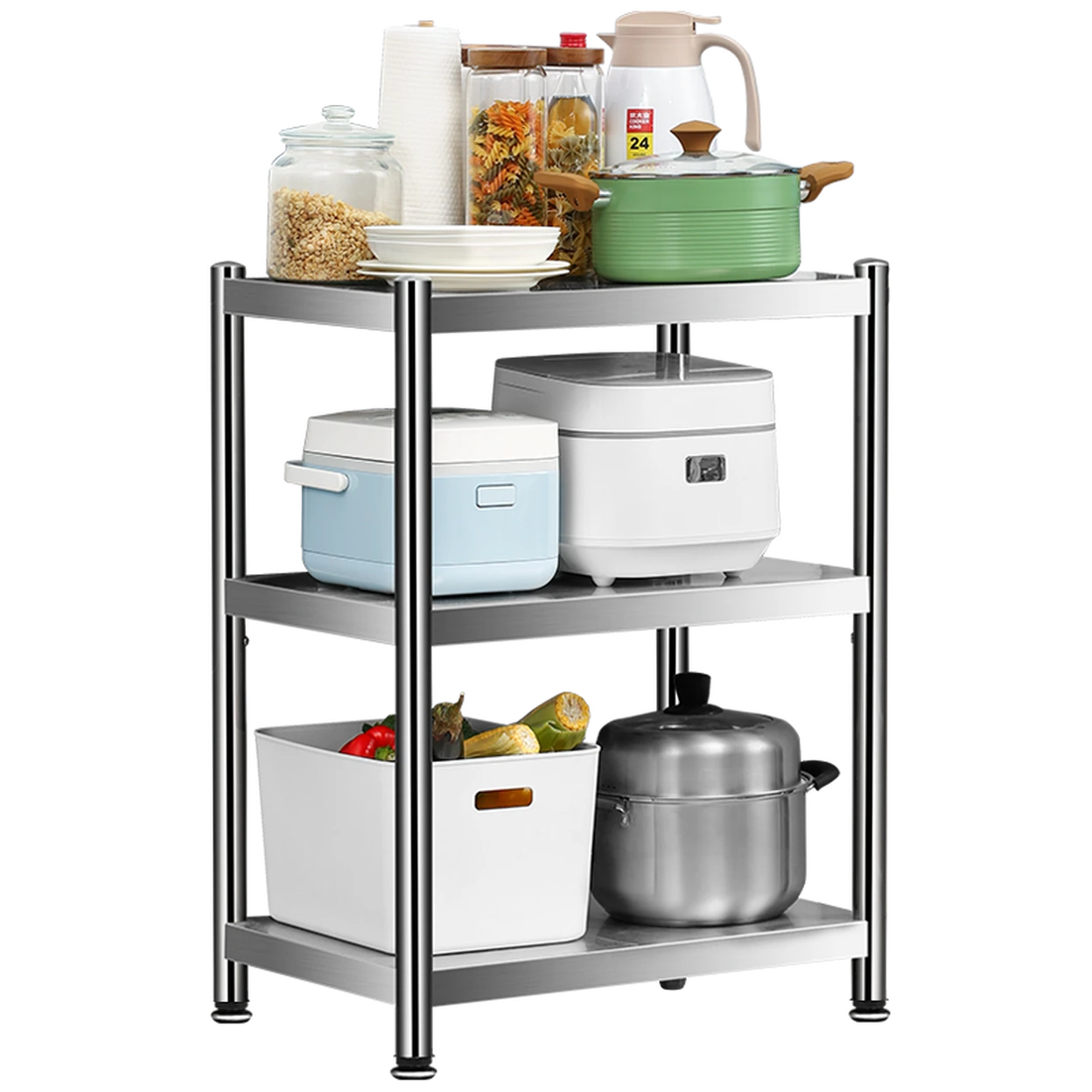COOKER KING Support pour four à micro-ondes, organisateur d’appareils, étagère coulissante extensible à 3 niveaux, hauteur réglable