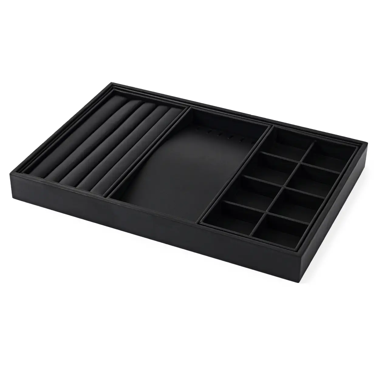 Oirlv Plateau de Présentation pour Bijoux en Cuir PU Luxueux, Empilable – Organiseur de Tiroir pour Bijoux Homme et Femme, Rangement et Présentoir pour Bagues, Boucles d’Oreilles et Colliers, Taille 35×24×3cm image 1