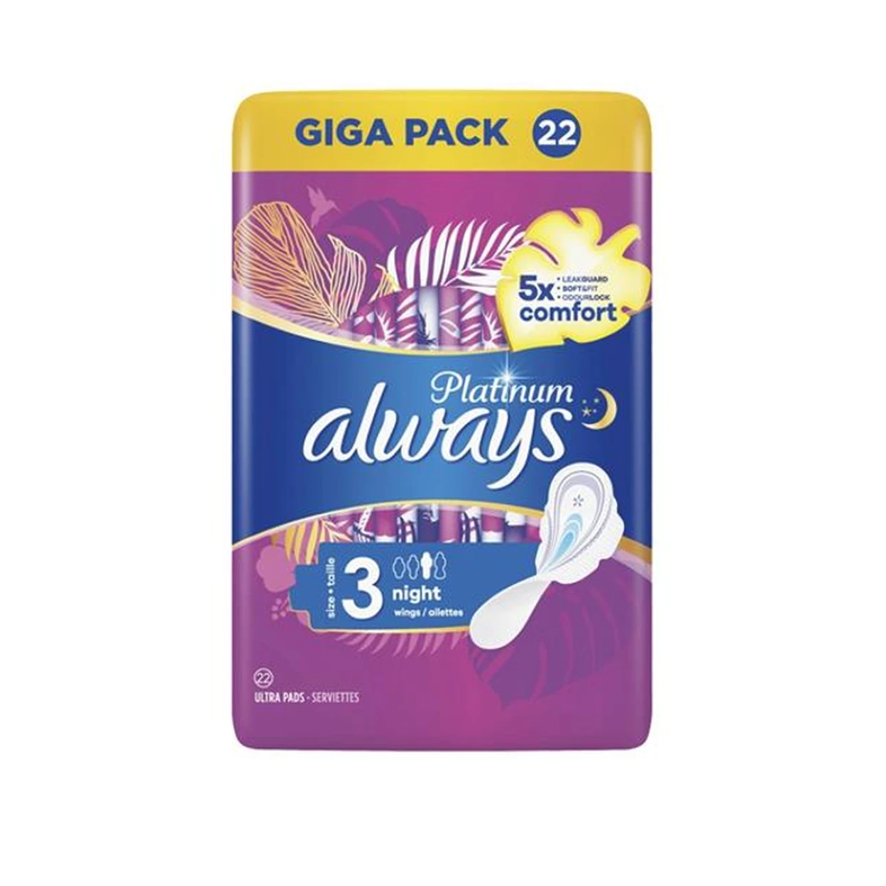 Always Platinum - Serviettes Hygiéniques Nuit - Taille 3 - Lot de 22