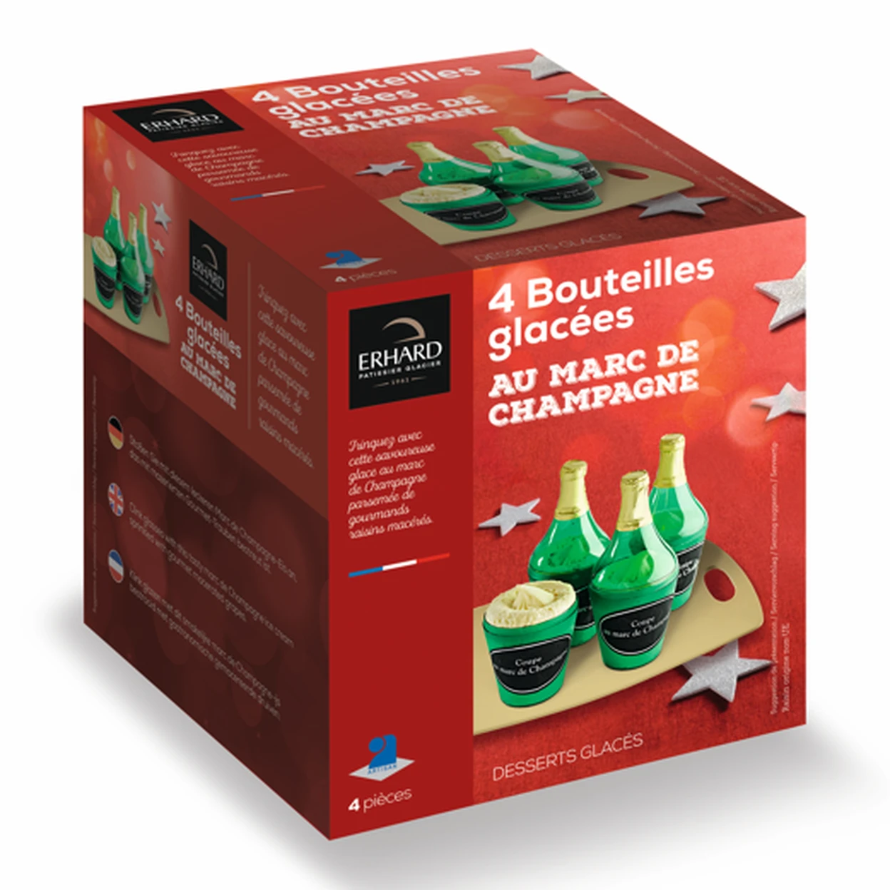 L’élégance du champagne sublimée par le froid. Nos coupes glacées, moulées en forme de bouteilles, transforment la crème onctueuse et les fruits en une expérience aussi raffinée que spectaculaire. Idéales pour trinquer autrement.