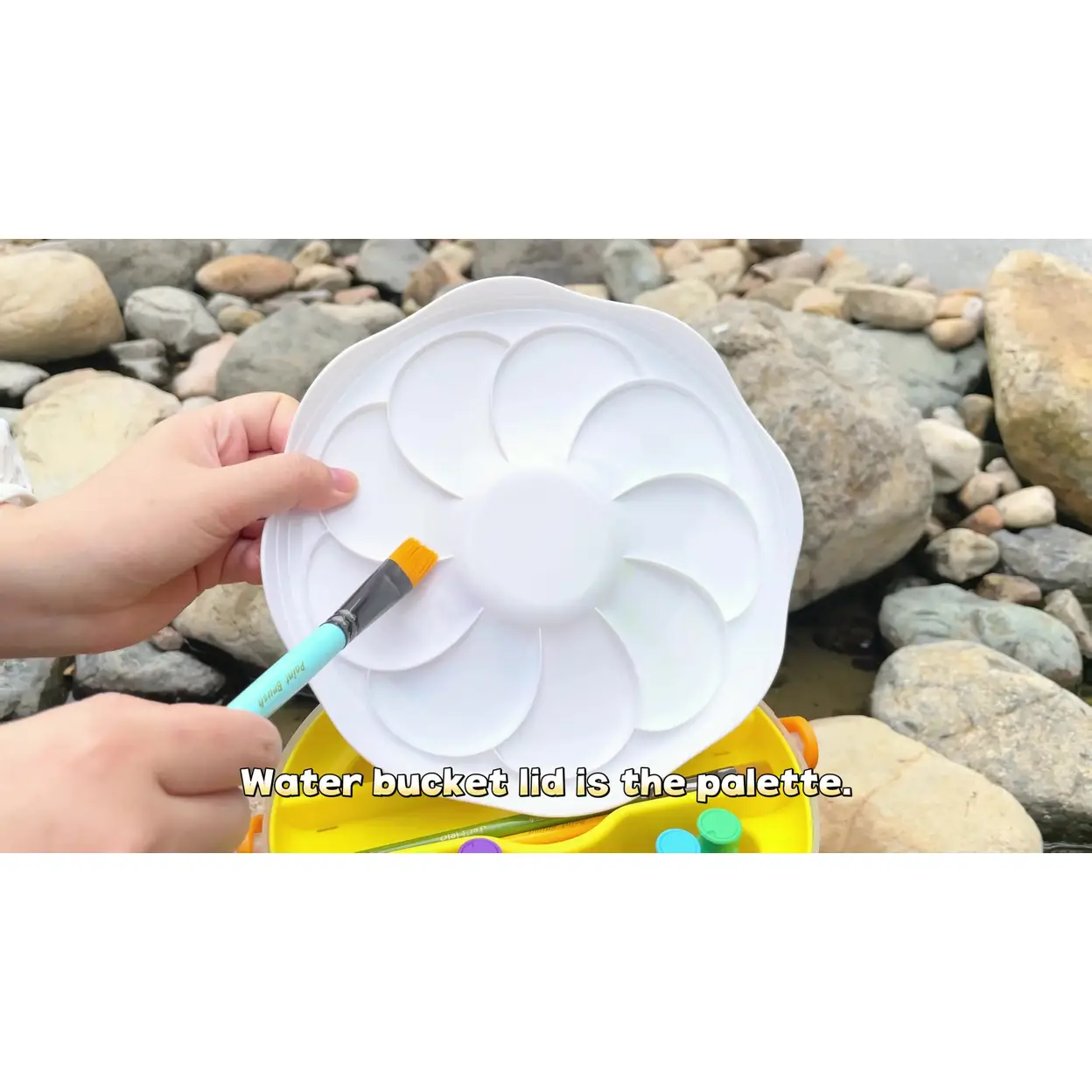 Sans danger pour les enfants et nettoyage facile : Fabriqué avec des matériaux non toxiques et conçu avec un bouchon anti-fuite. Le couvercle du seau sert également de palette de mélange, et le gobelet inclus simplifie le nettoyage des pinceaux.