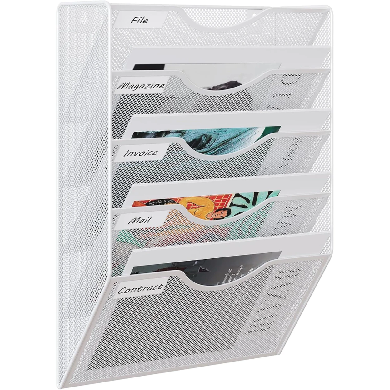 "Porte-dossiers murale en maille A4 à 5 rangées, Blanc"