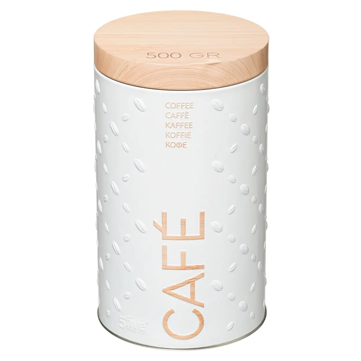 5five Boîte de conservation 500 g Scandi Cafe - Métal - Blanc - Fermeture automatique